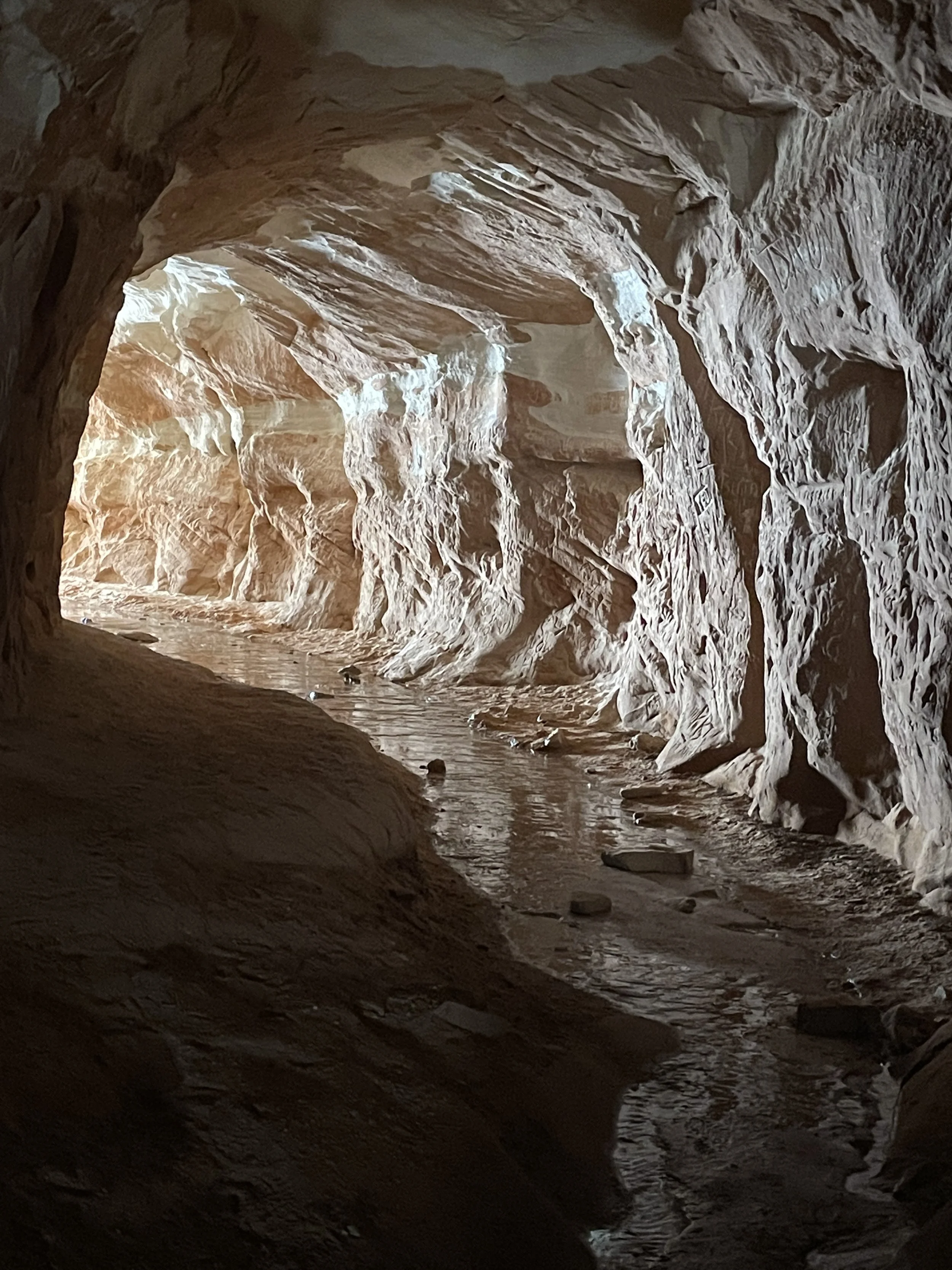 This is a short hike (little less than a mile out-and-back) with a very steep and somewhat sketchy sandstone hill to climb to get to a manmade cave. The best time for pictures is late in the afternoon.