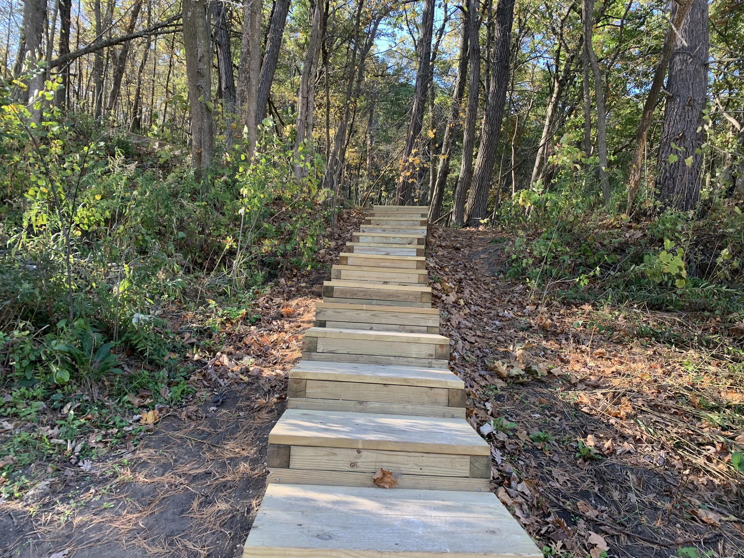 From the road, these are the steps you are looking for, and the trail is clearly marked for both Coyote Point Trail and Dakota Trail. There will also be signs for the MN Hiking Club Trail.