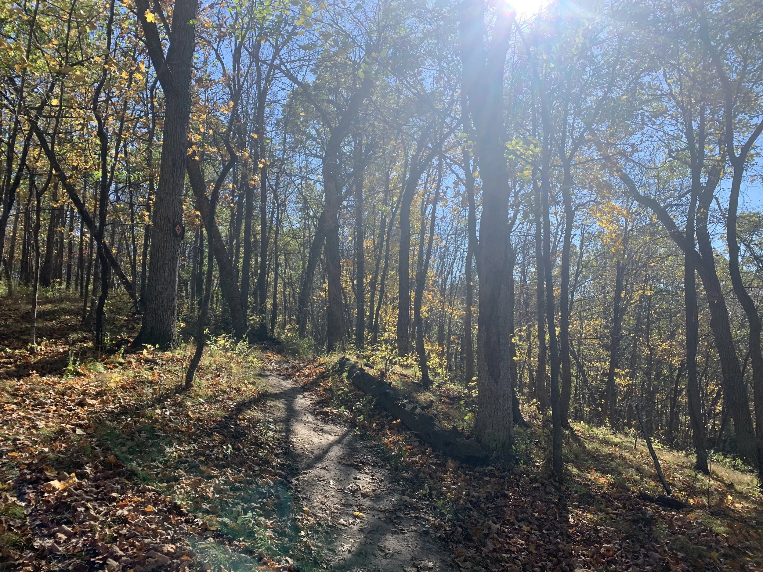 Hang a left when the trail splits to stay on the Dakota trail. You will no longer be on the MN Hiking Club trail. This part of the trail stays along the top of the bluffs for a little more than a half a mile.