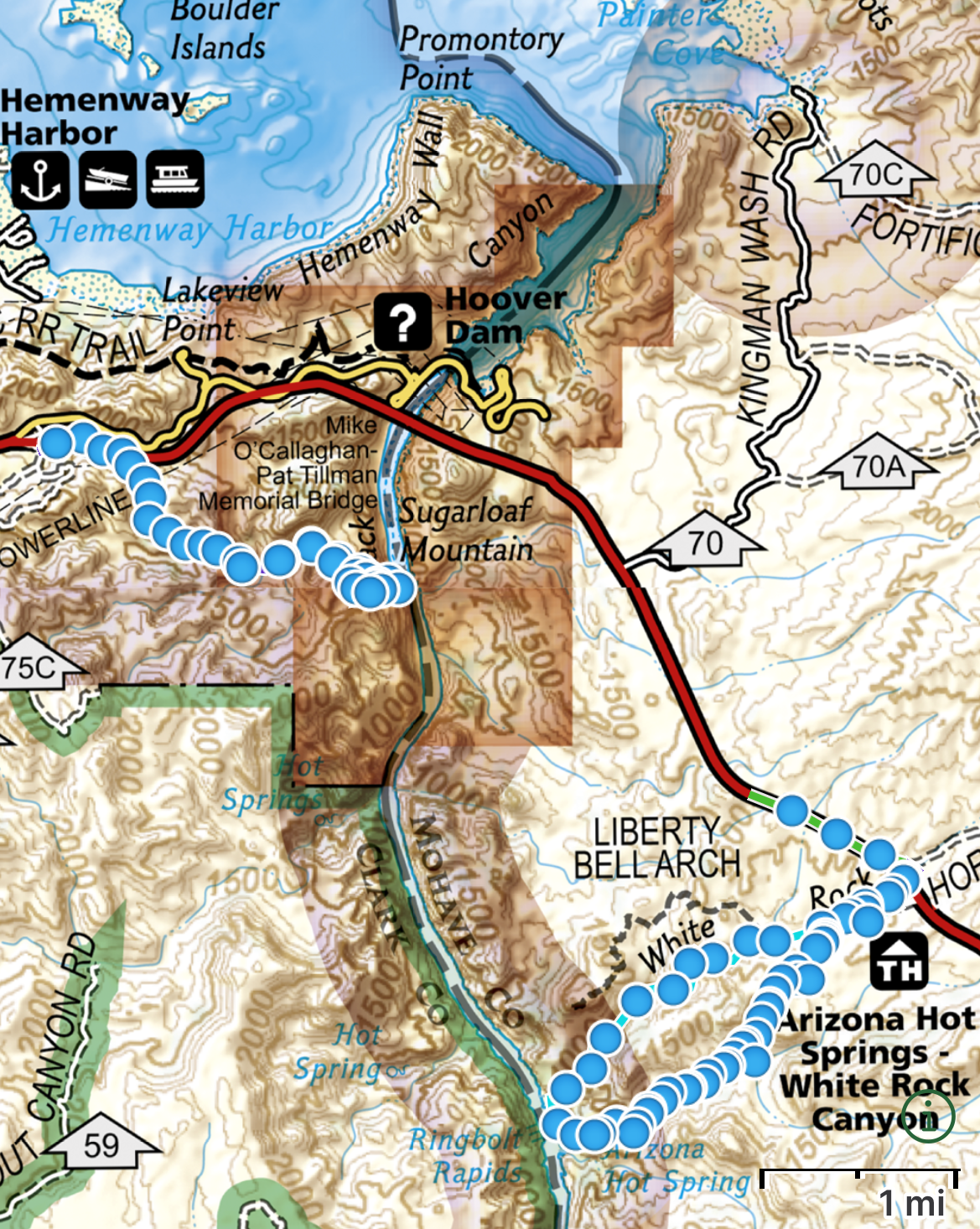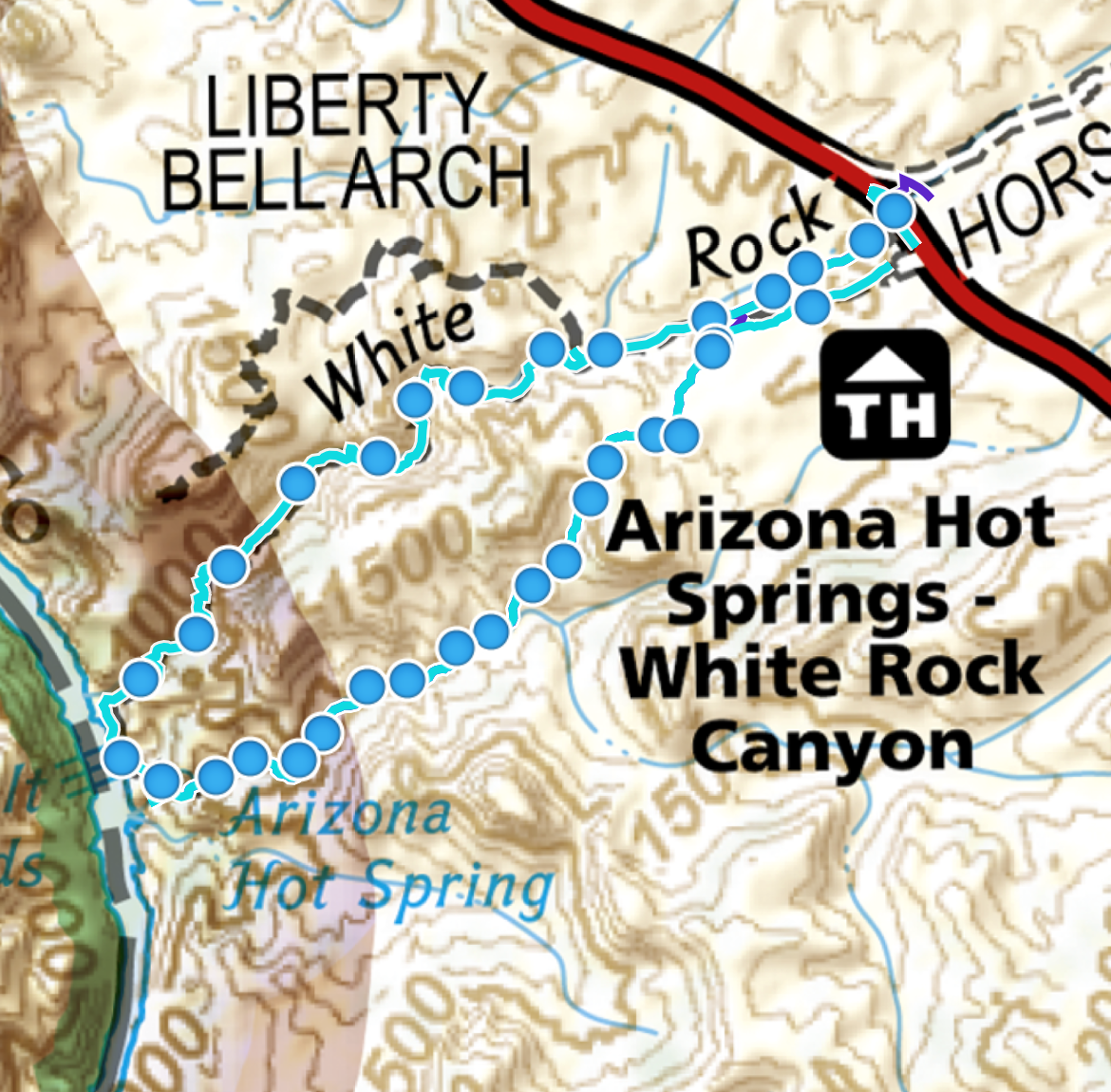 White Rock Canyon to AZ (Ringbolt) Hot Springs Map from GAIA GPS app