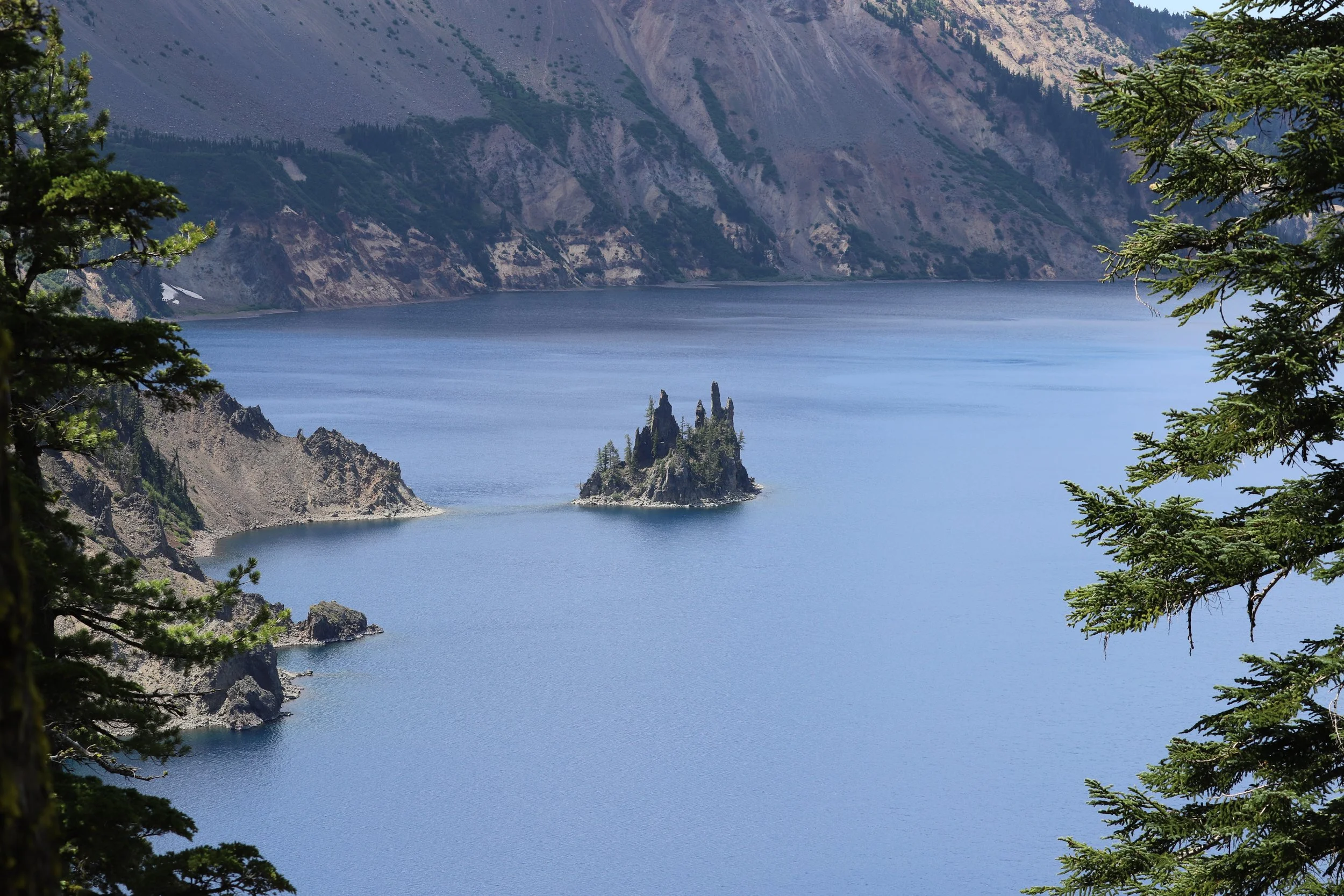 Phantom Ship Overlook was my favorite viewpoint at Crater Lake. This island was so well named. The longer I stared at it, the more I could imagine it as an actual ghost ship, sailing across the lake. According to the National Park information, this island is the oldest rock within the caldera at 400,000 years old.