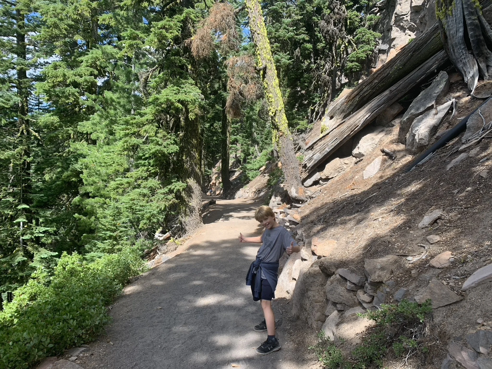 If you only have time for one hike in Crater Lake, you might as well hike Cleetwood Cove so you can touch the incredibly cold water that forms Crater Lake. My 10 year-old could do it - so can you!