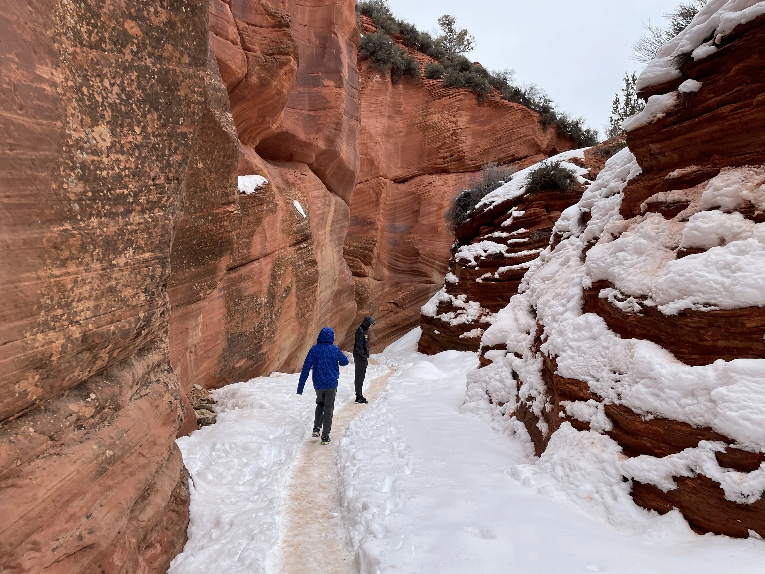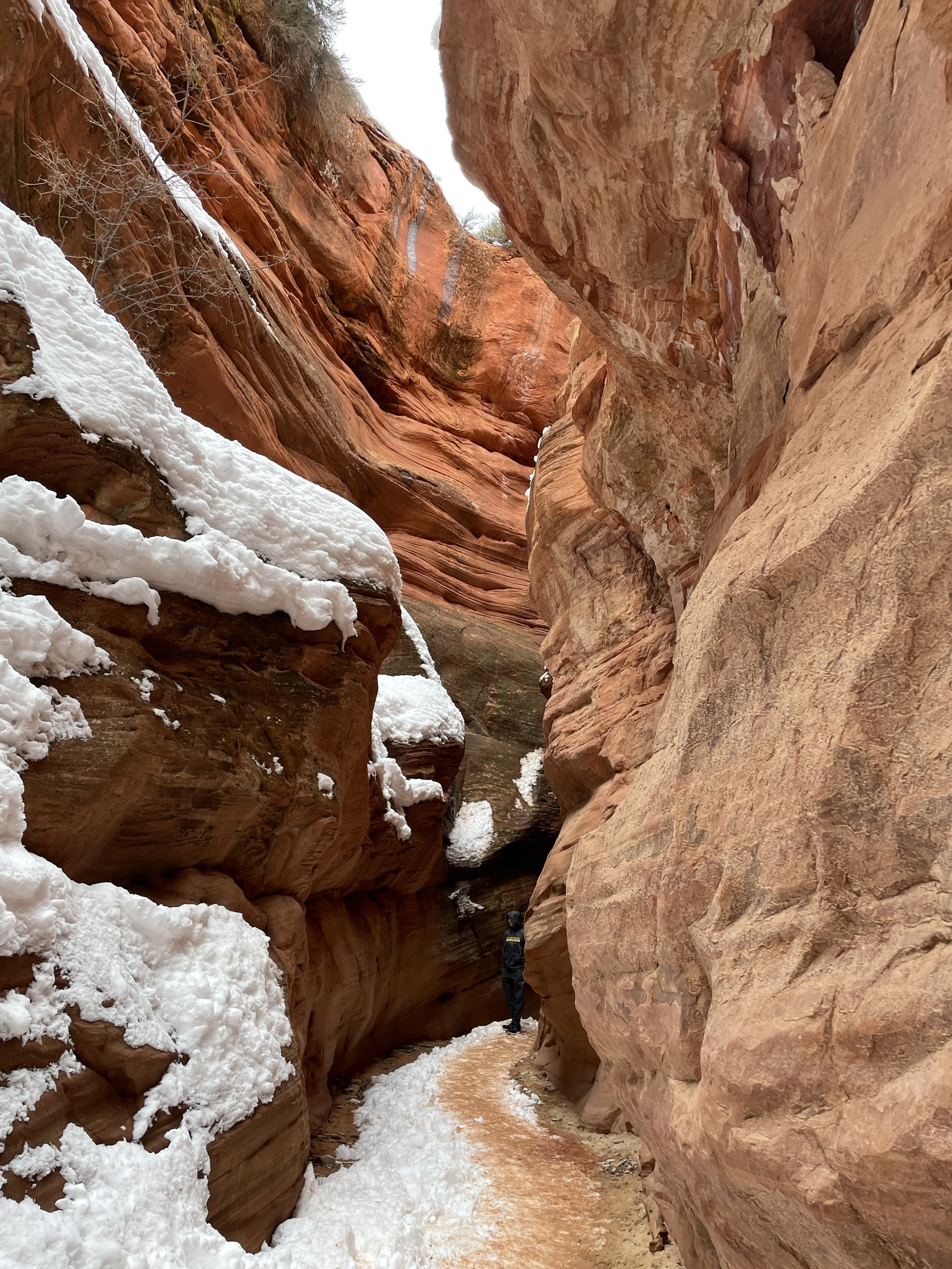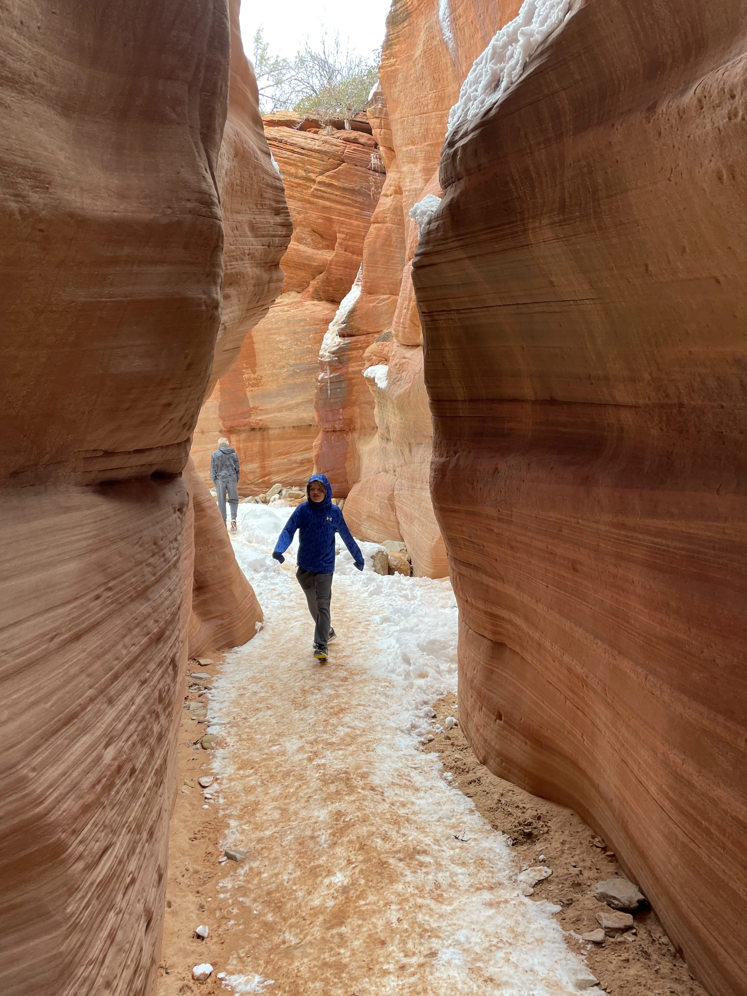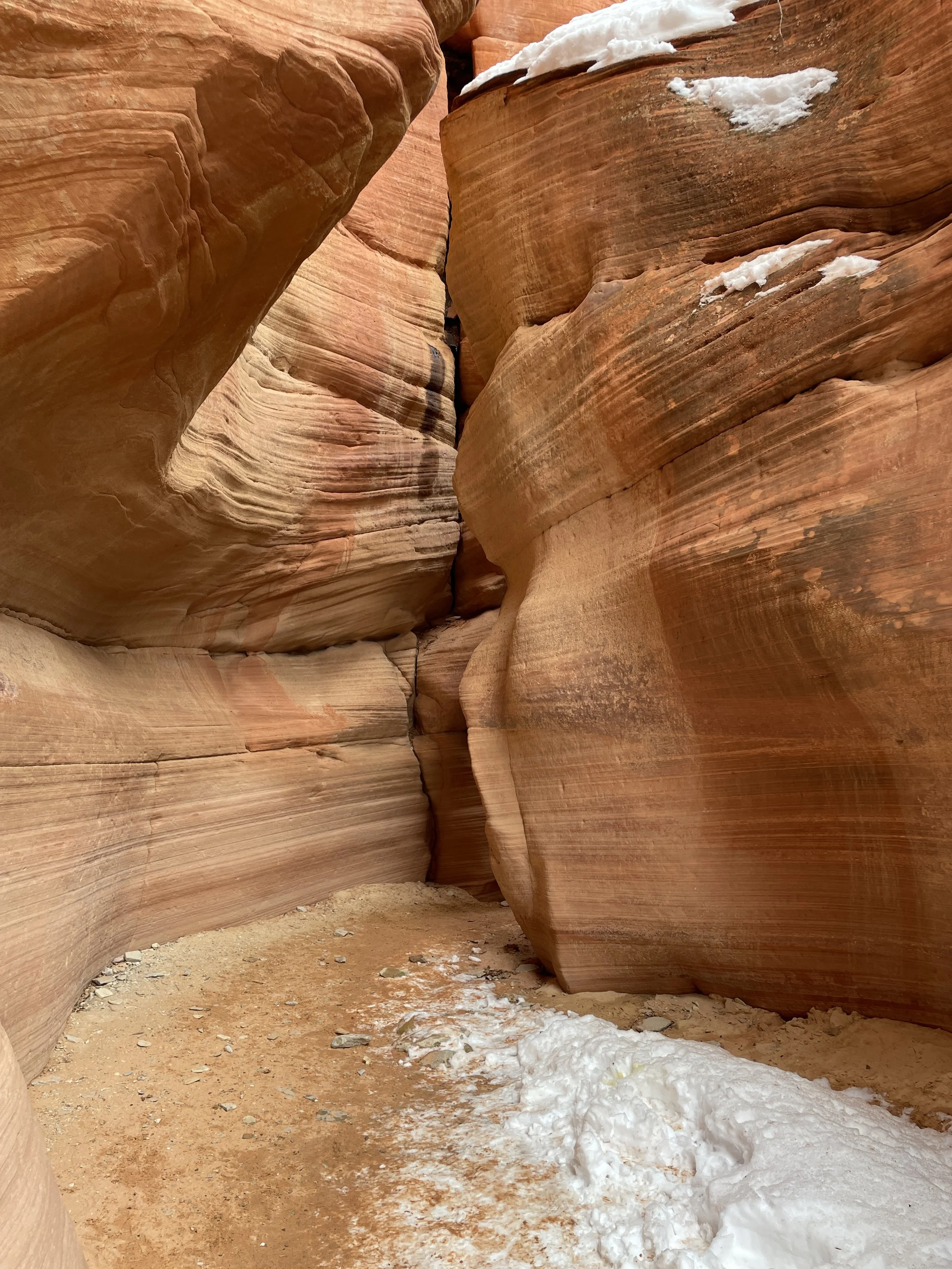 We visited Peekaboo Slot Canyon in the first week of March 2023, and the canyon was still packed with snow. Yes, it snows in the desert.