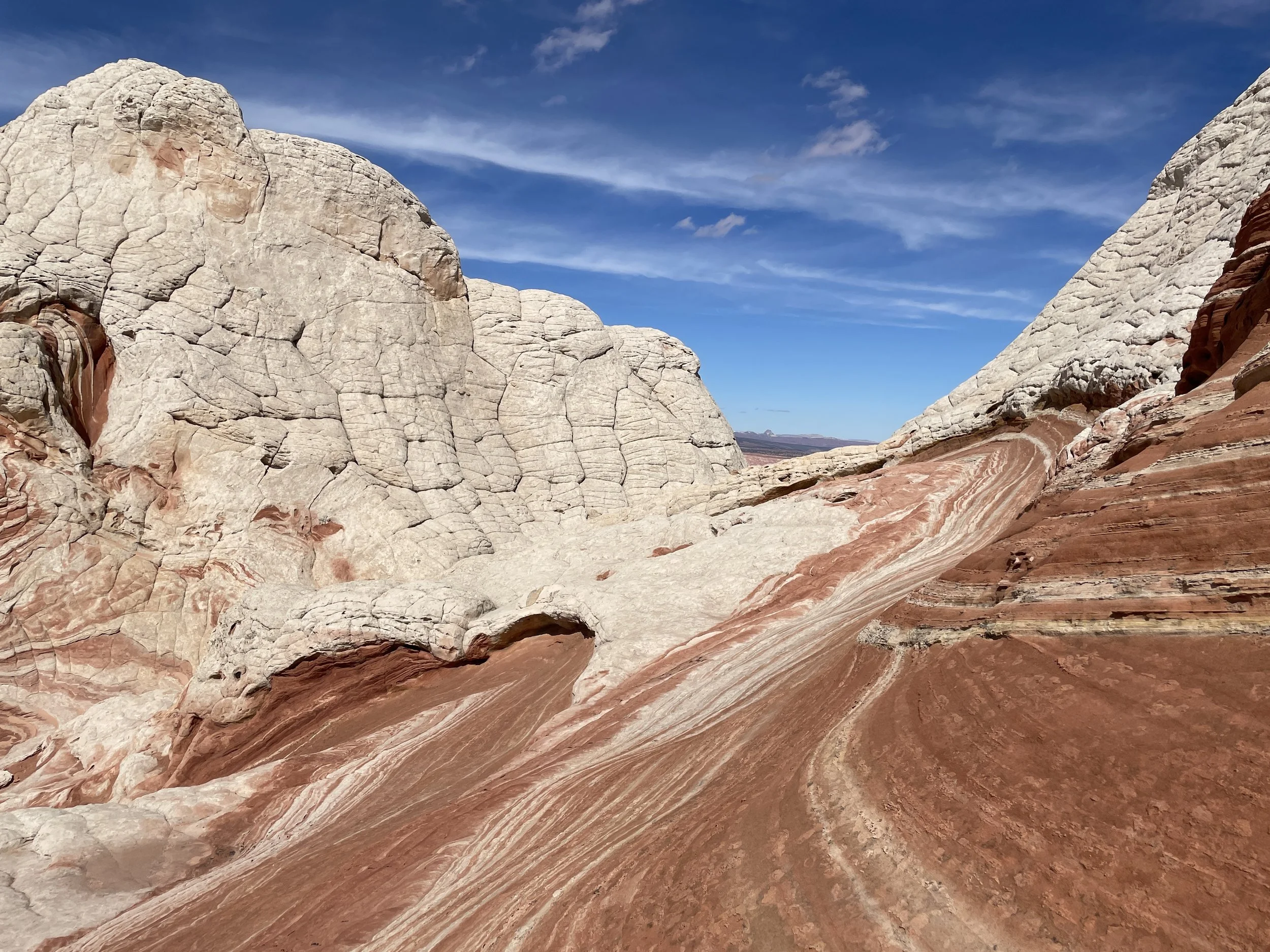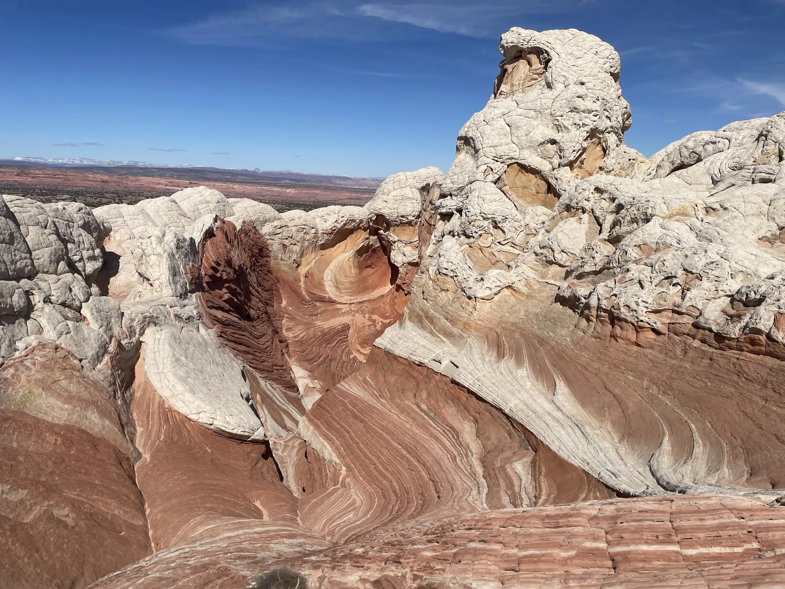 Probably the furthest off-the-beaten-trail I’ve ever been, White Pocket is in a category all of its own. The huge, layered and colorful rocks, the desolateness, and how hard it is to get to (all three are such extremes) make White Pocket hard for me to compare it to anything else, even other places nearby.