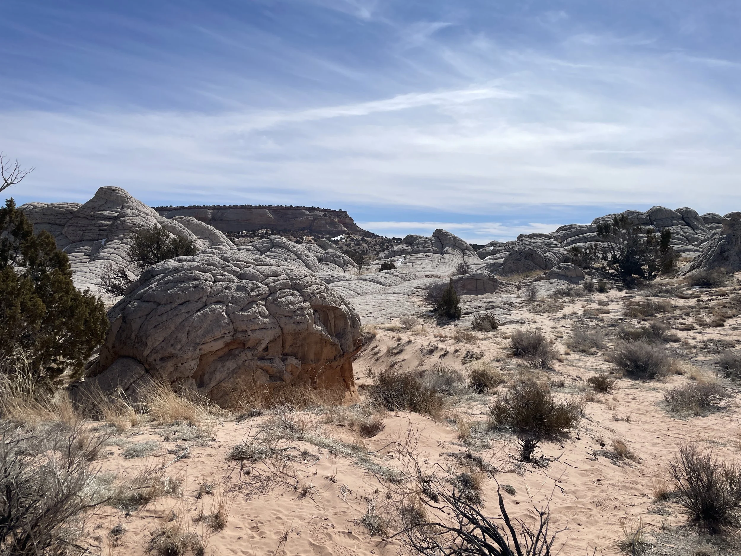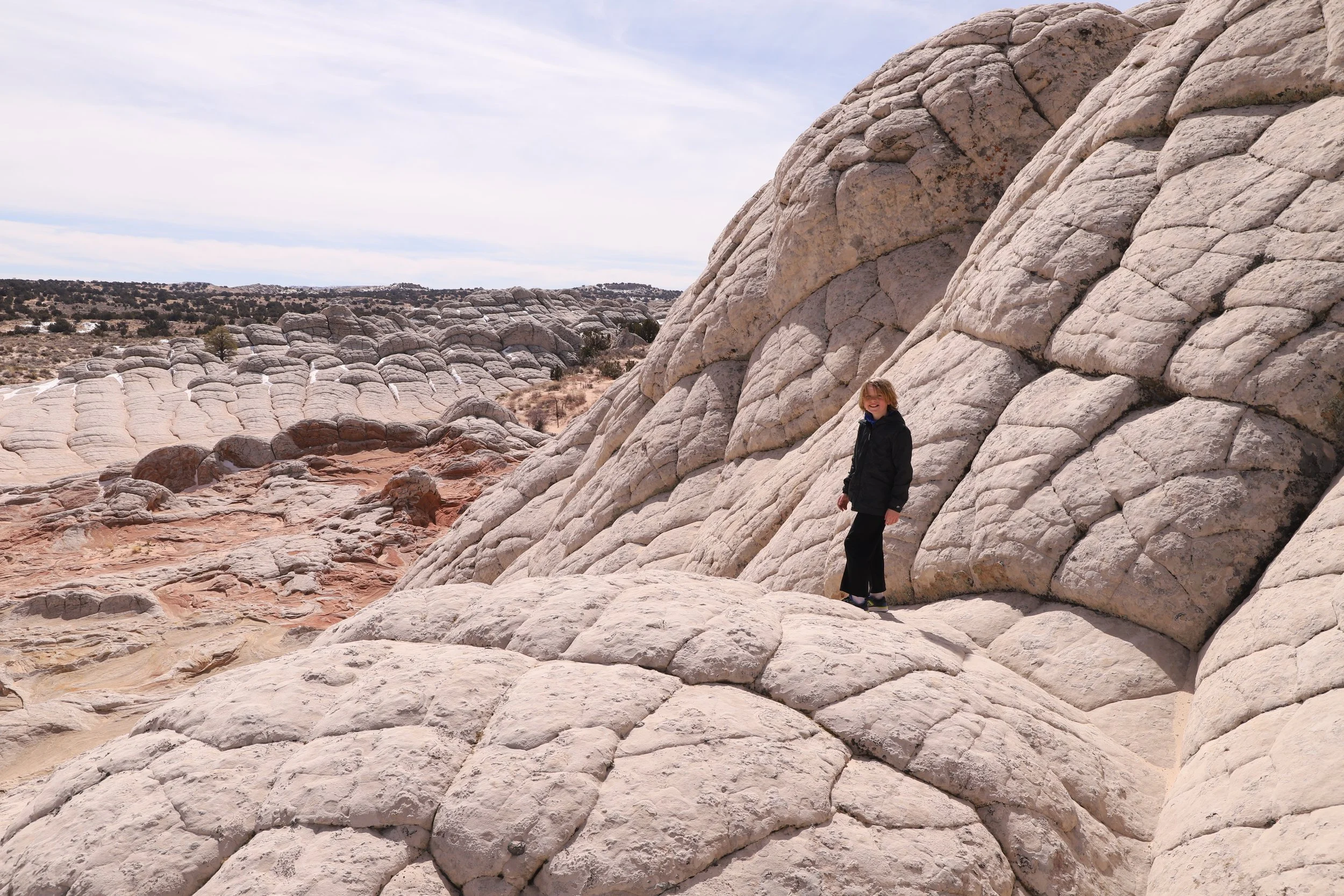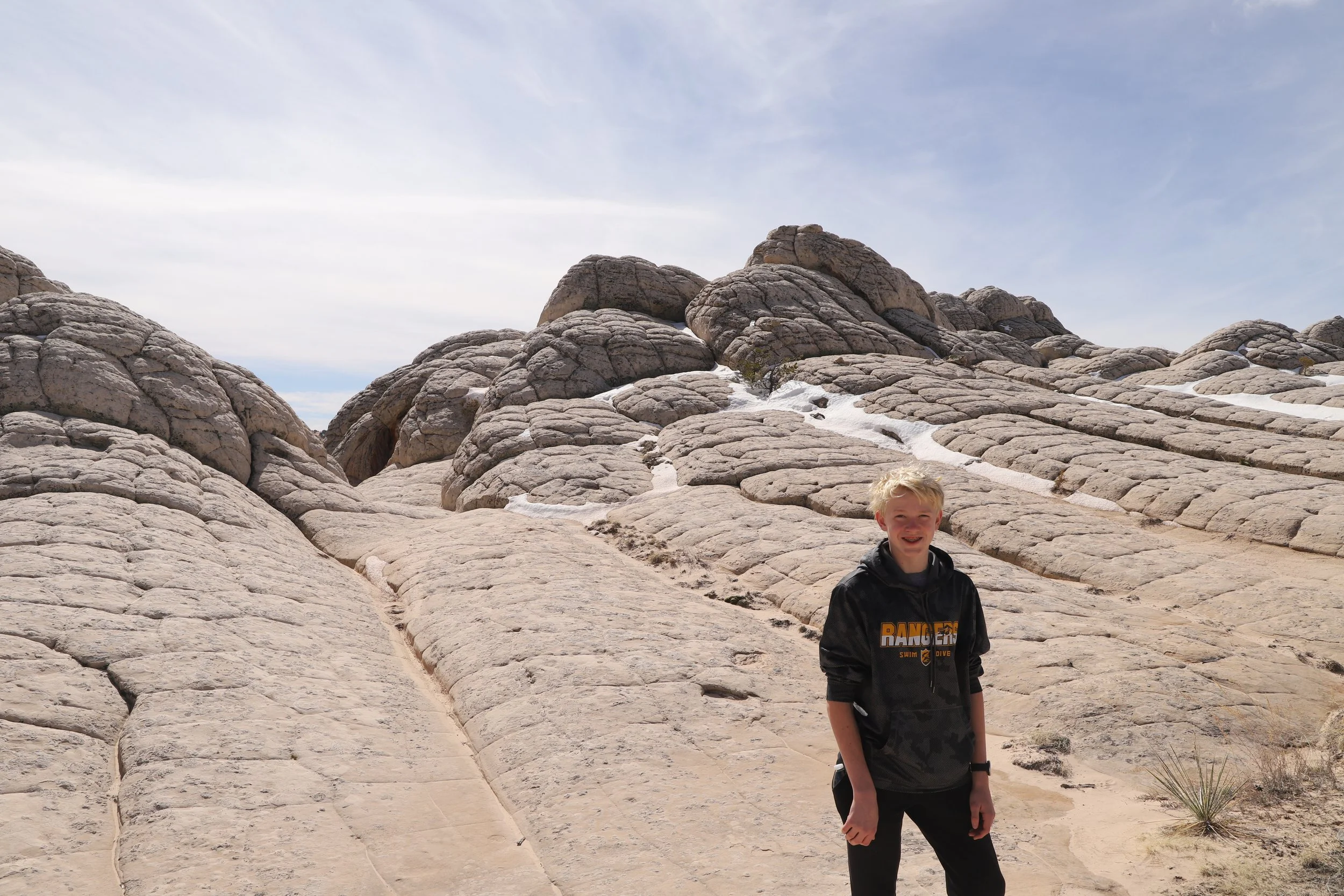 On our Spring Break trip in March 2023, it was just my boys and me. I had rented a truck, but I had no idea how to drive on sand, and I didn’t really want to get stuck some place without another adult to help me figure out what to do. I did want a chance to visit White Pocket though, so I booked a tour with Paria Outpost & Outfitters. I think that was the best way for us to visit this place. For someone with a 4x4 vehicle and knowledge of how to drive in sand, it’s possible to do this without a tour, but I would download a GPS map. These roads are not marked, and I wouldn’t recommend getting lost in the desert.