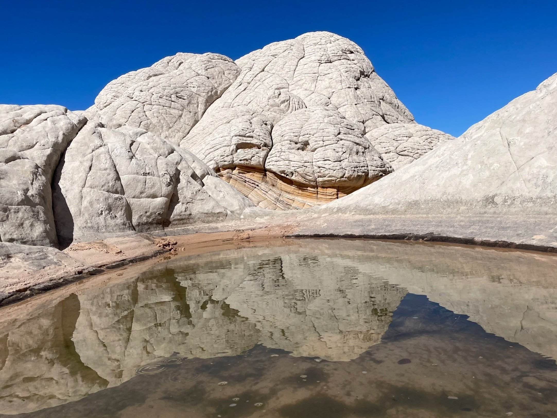 Why is it called White “Pocket”? The Pocket refers to the holes in the rock that can hold water. We spent awhile trying to take reflection pictures. A couple of them turned out pretty well.
