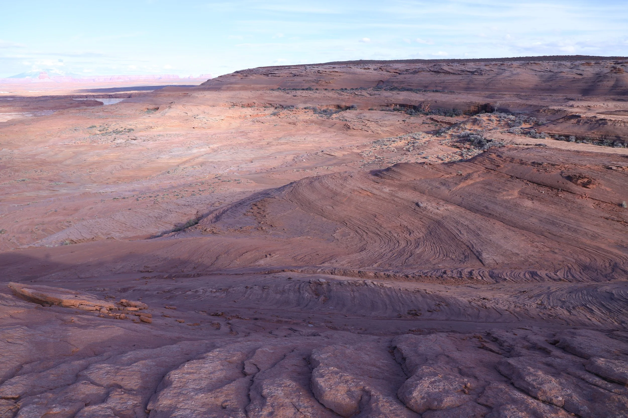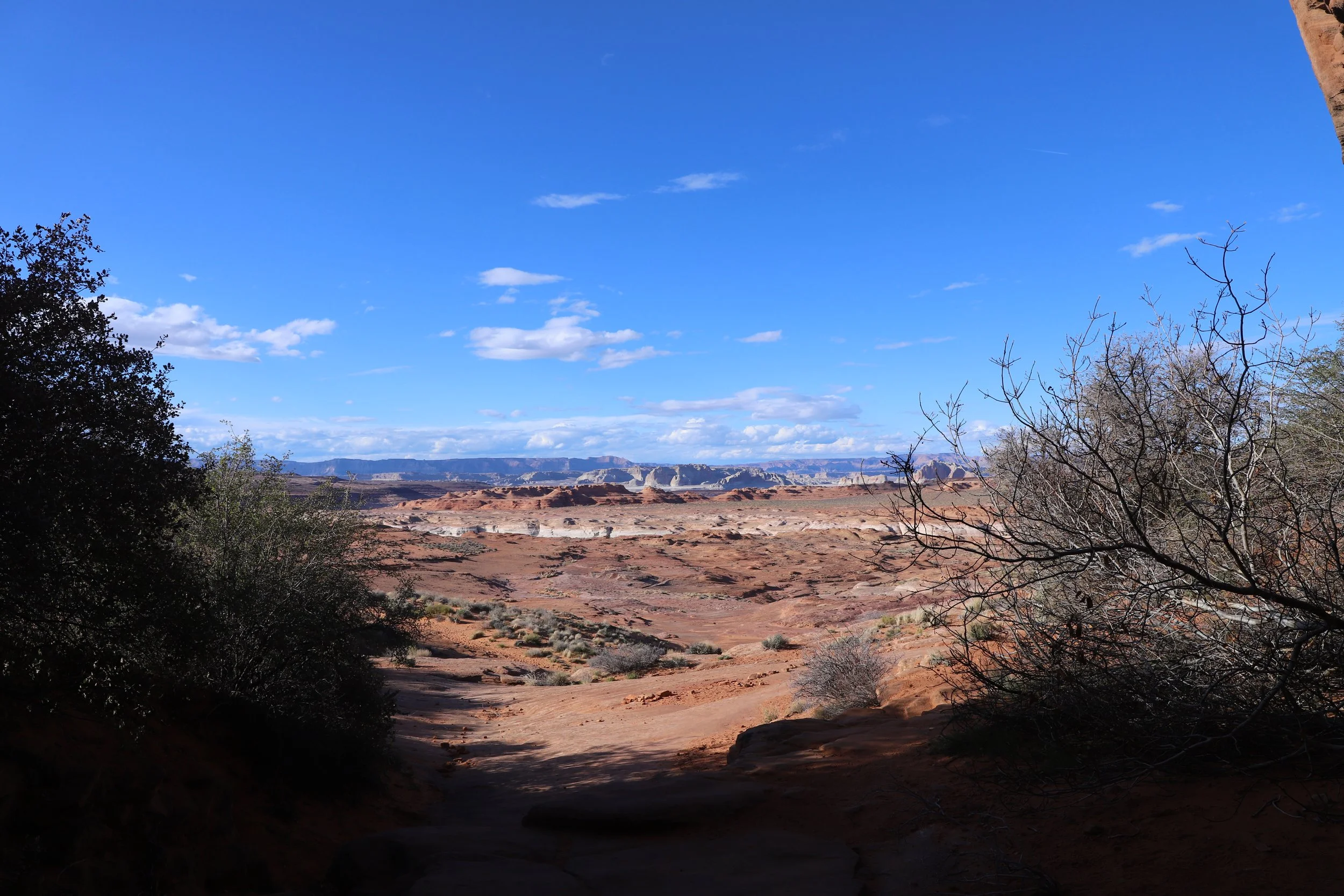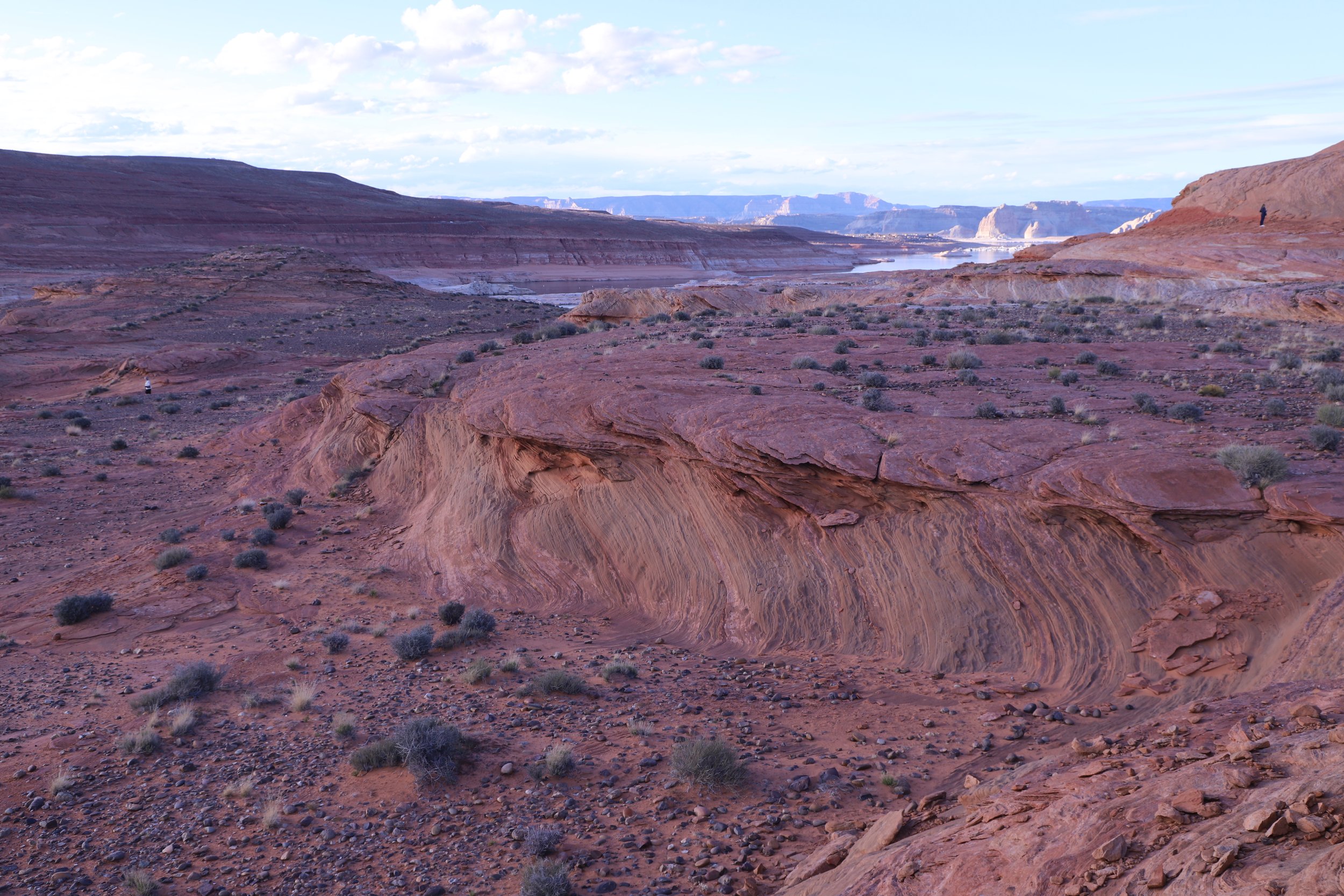 Climbing up to the viewpoint. Lake Powell is off in the distance, within the canyon
