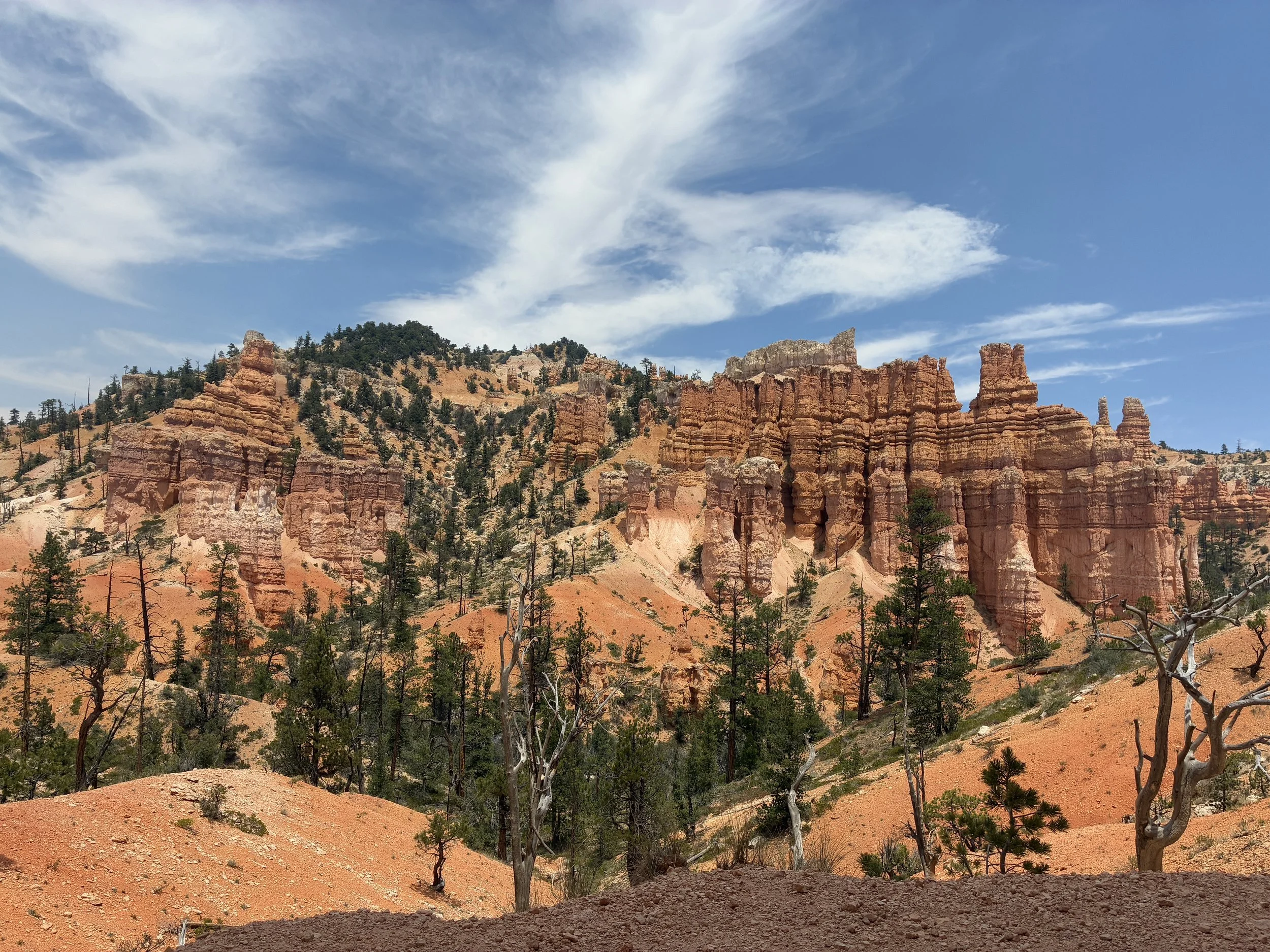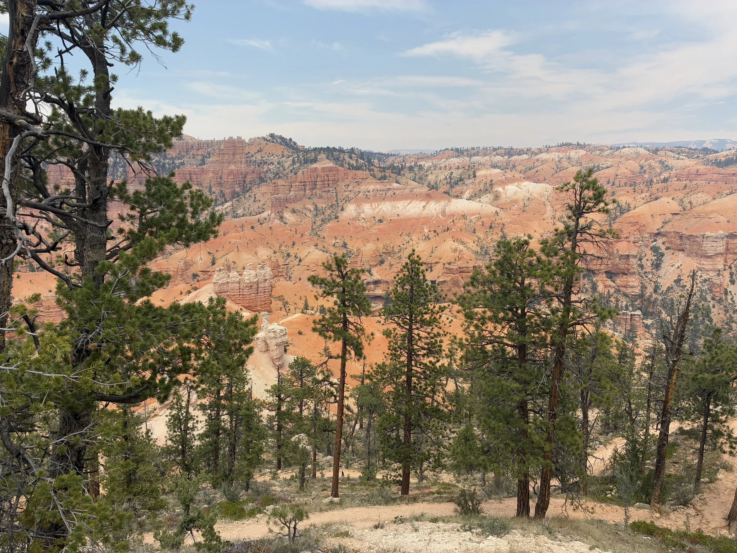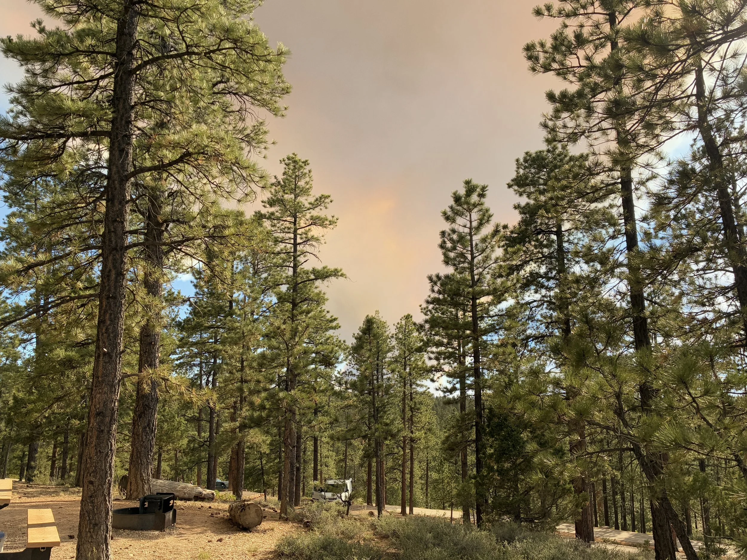 The reason we stopped at Whiteman had nothing to do with the Bryce Canyon views. We were here in June 2025, just a couple of days after the France Dixie Fire started. Whiteman was about 3 miles from the edge of the wildfire. We had not yet seen an actual wildfire, so we stopped here and watched the ever changing smoke clouds for a long time, while we talked to Park Rangers that were sitting at a picnic table, also memorized by the fire. Every once in awhile, the wind direction would change, and the orange flames would just barely come into view between the trees. It was humbling to watch the shear force of nature beyond our control - devastating to watch it destroy a landscape, but not unbeautiful at the same time. It was a unique moment in time to be at Bryce Canyon, and we are grateful to the firefighters that ultimately kept this National Park safe.