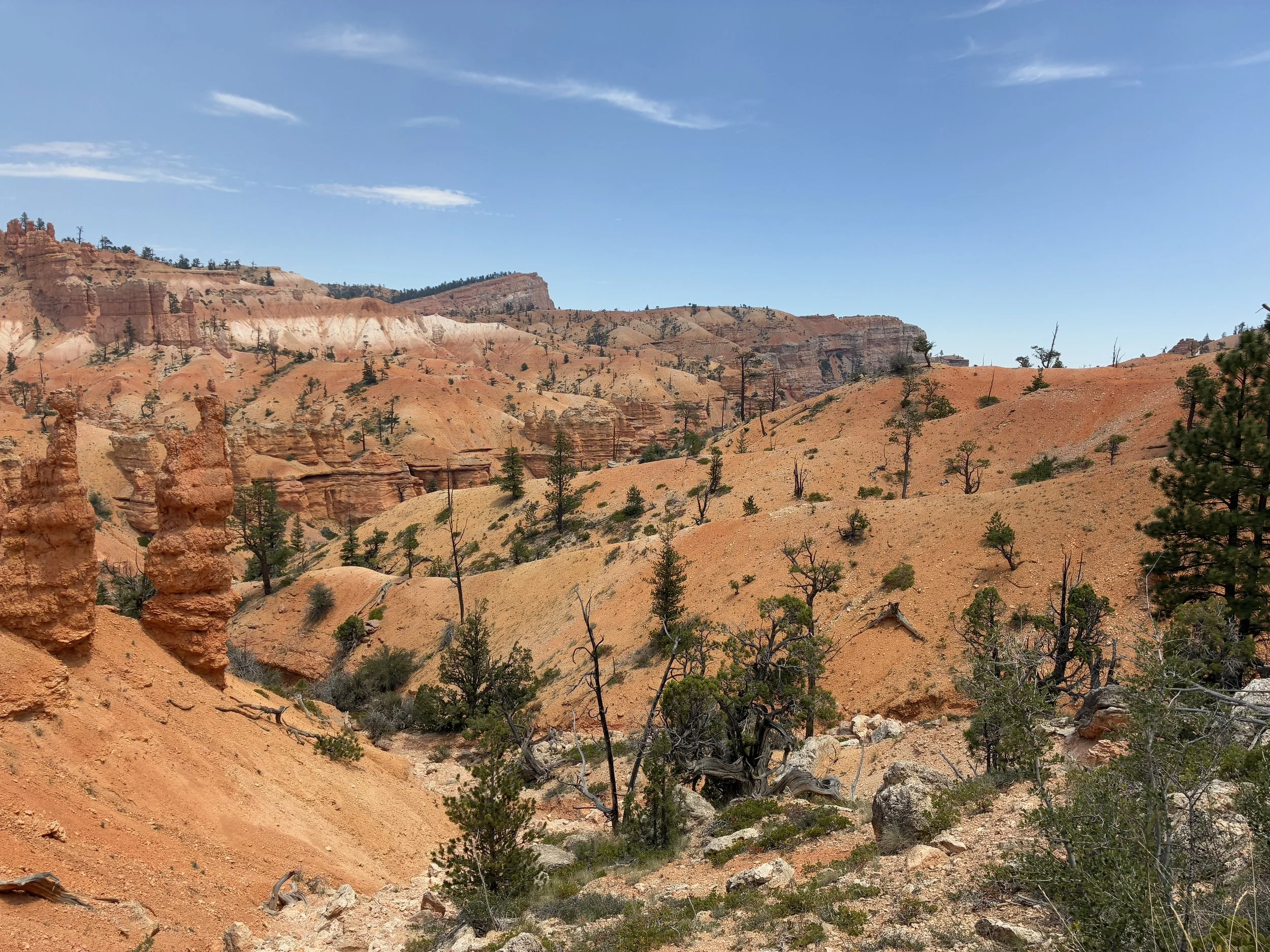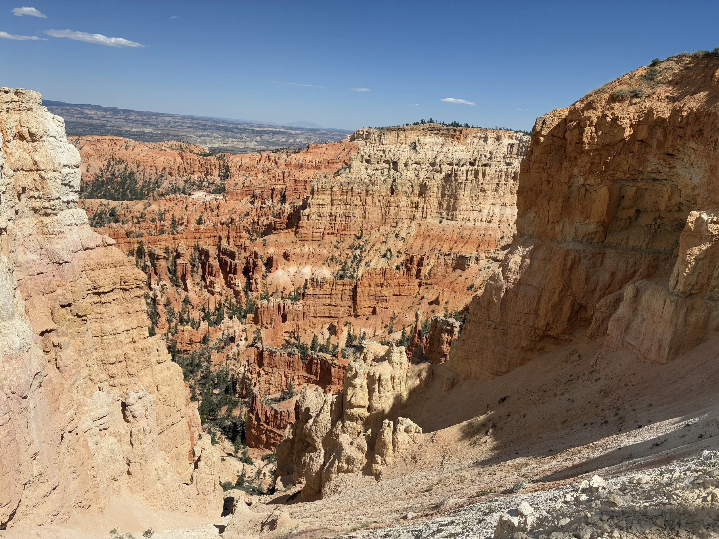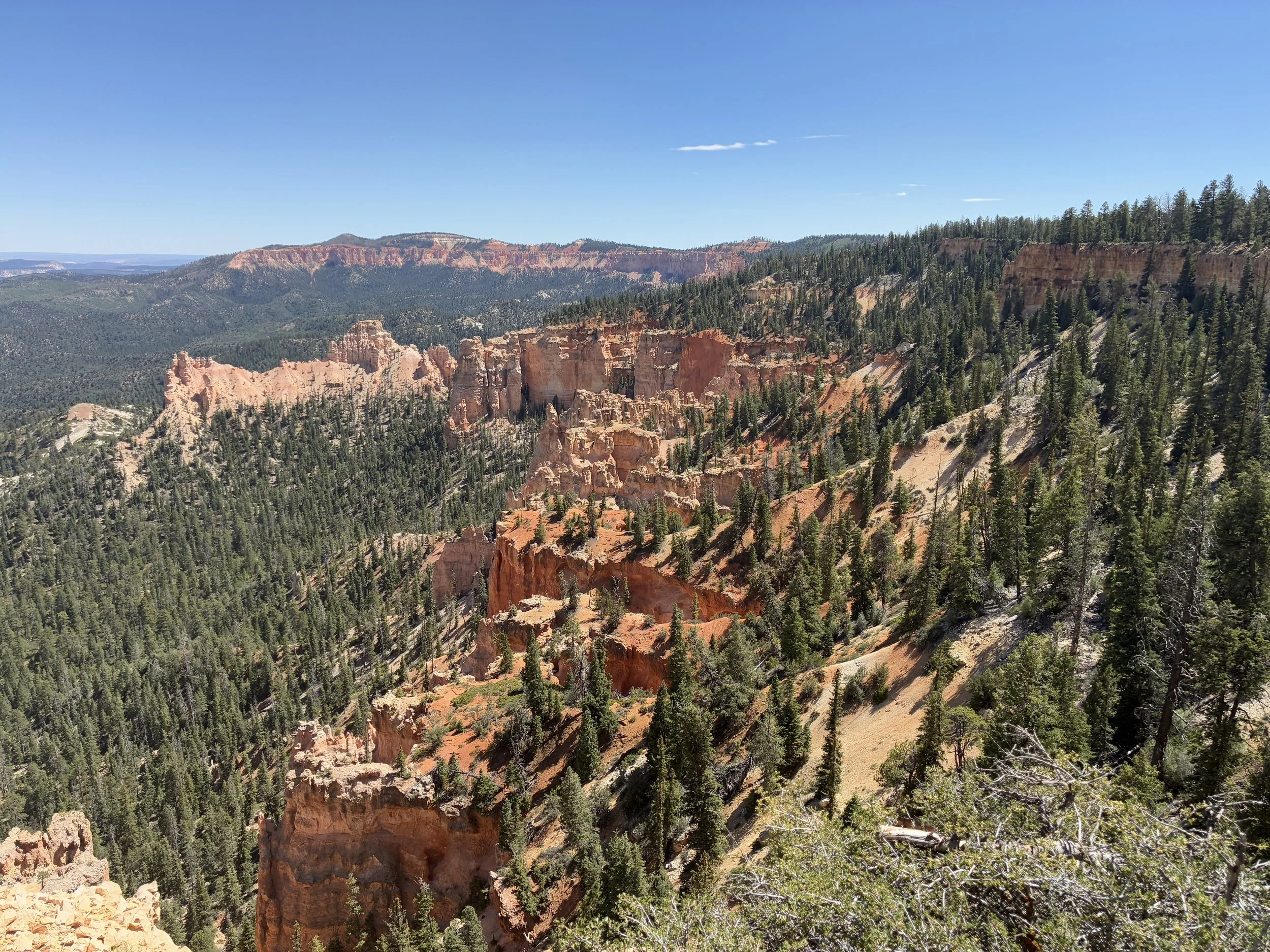 The reason we stopped at Whiteman had nothing to do with the Bryce Canyon views. We were here in June 2025, just a couple of days after the France Dixie Fire started. Whiteman was about 3 miles from the edge of the wildfire. We had not yet seen an actual wildfire, so we stopped here and watched the ever changing smoke clouds for a long time, while we talked to Park Rangers that were sitting at a picnic table, also memorized by the fire. Every once in awhile, the wind direction would change, and the orange flames would just barely come into view between the trees. It was humbling to watch the shear force of nature beyond our control - devastating to watch it destroy a landscape, but not unbeautiful at the same time. It was a unique moment in time to be at Bryce Canyon, and we are grateful to the firefighters that ultimately kept this National Park safe.