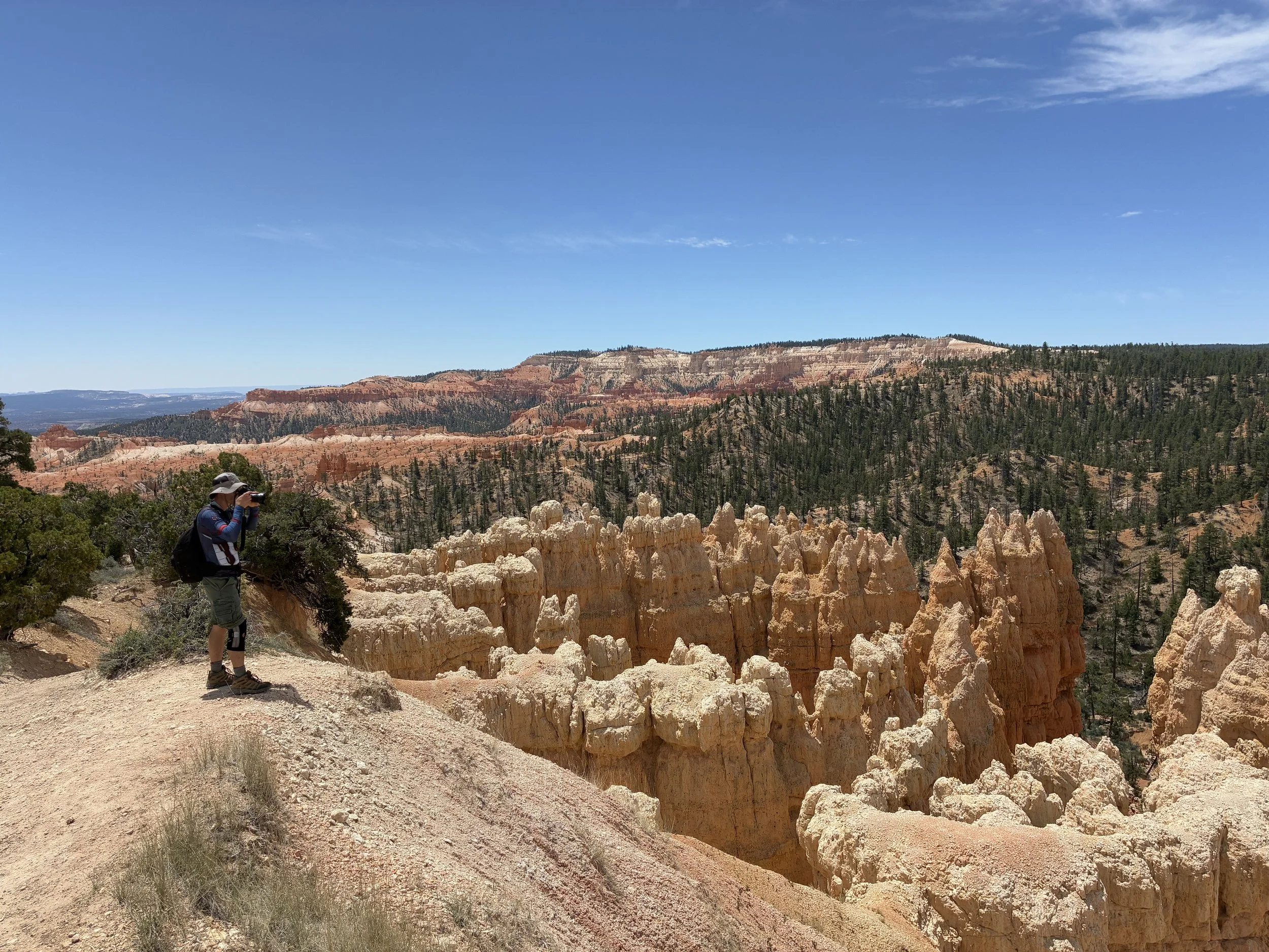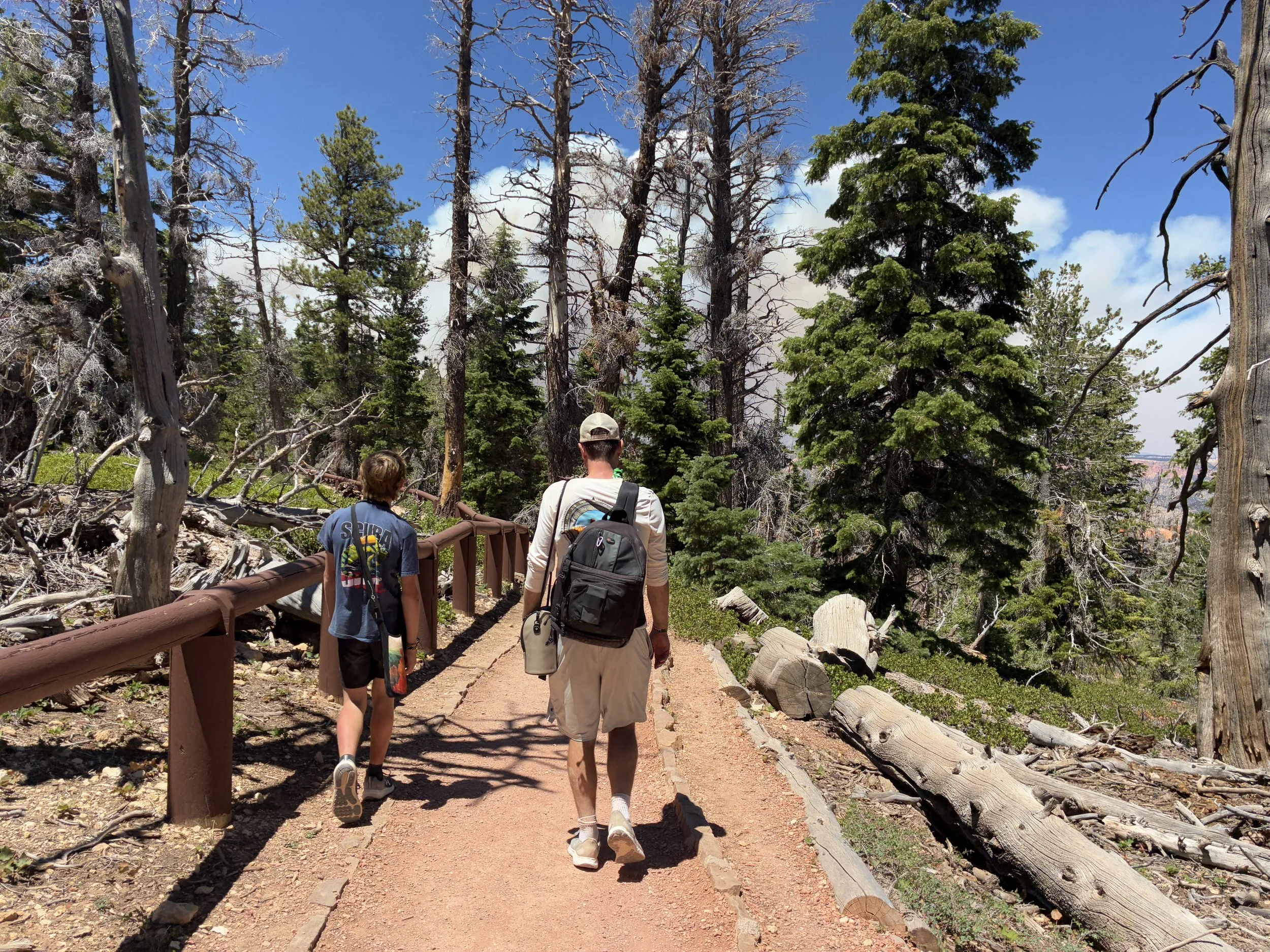 As I write about the Rim Trail between Sunrise and Fairyland Point, keep in mind that we have already hiked Queen’s Garden, and there is no “easy” hike in Bryce Canyon at over 8000ft in elevation. I was already tired before we started the Rim Trail.