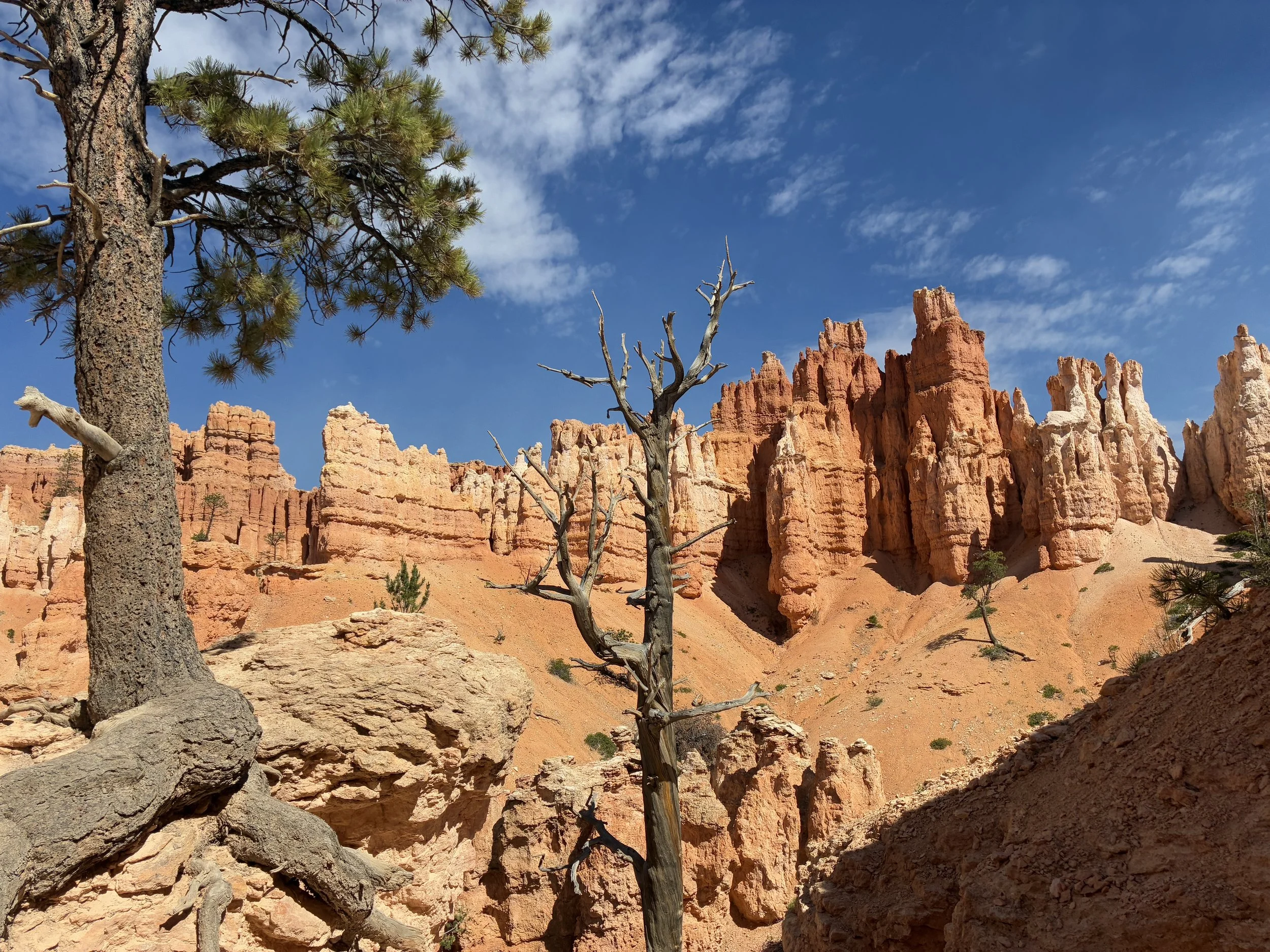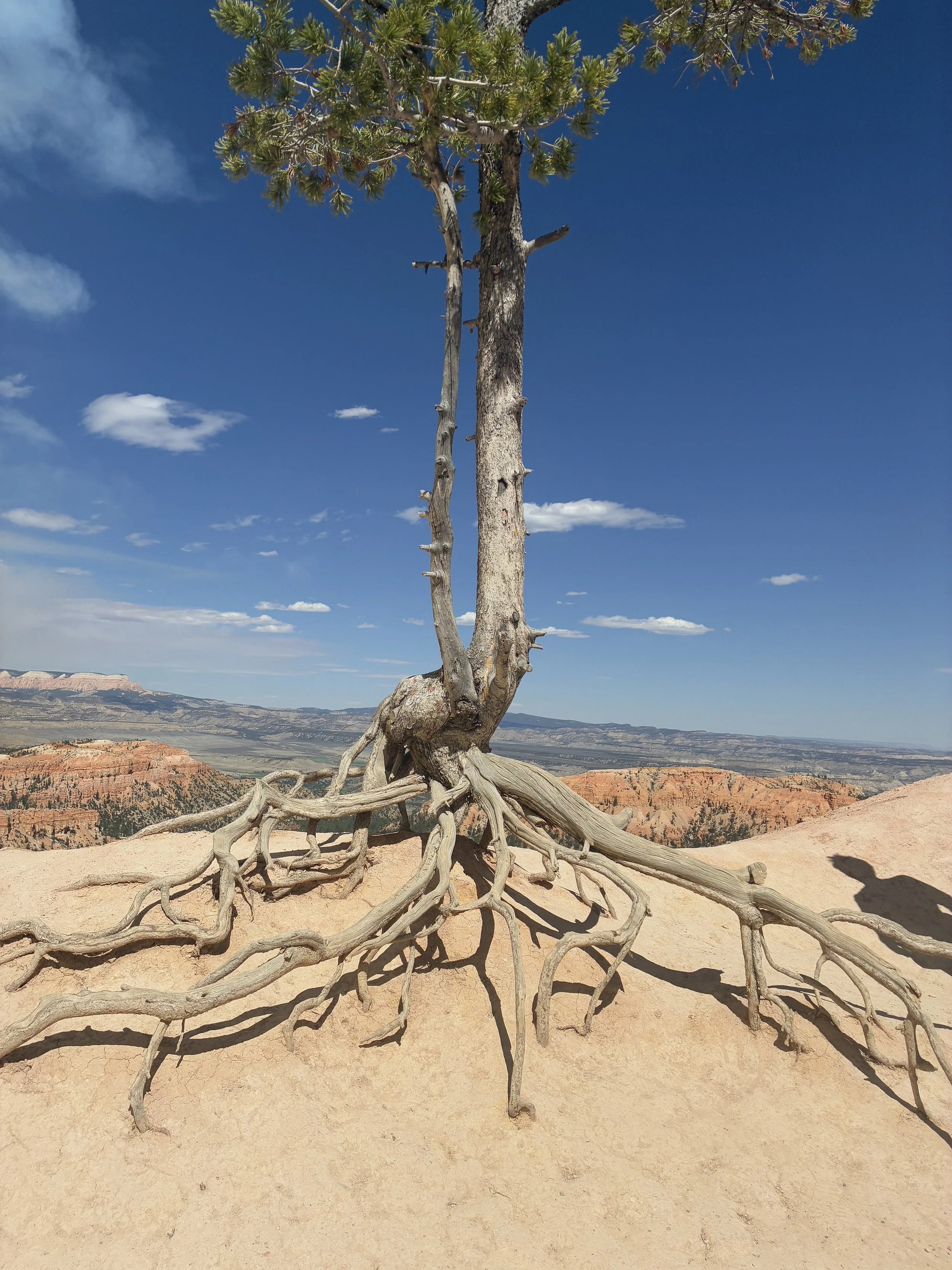 Bryce Canyon, Sunrise Point – Look at this tree’s roots. The reason they are exposed is erosion. The trees highlight how dramatically the rate of erosion occurs at this canyon. This tree isn’t very old, and there is more than a foot of exposed roots.