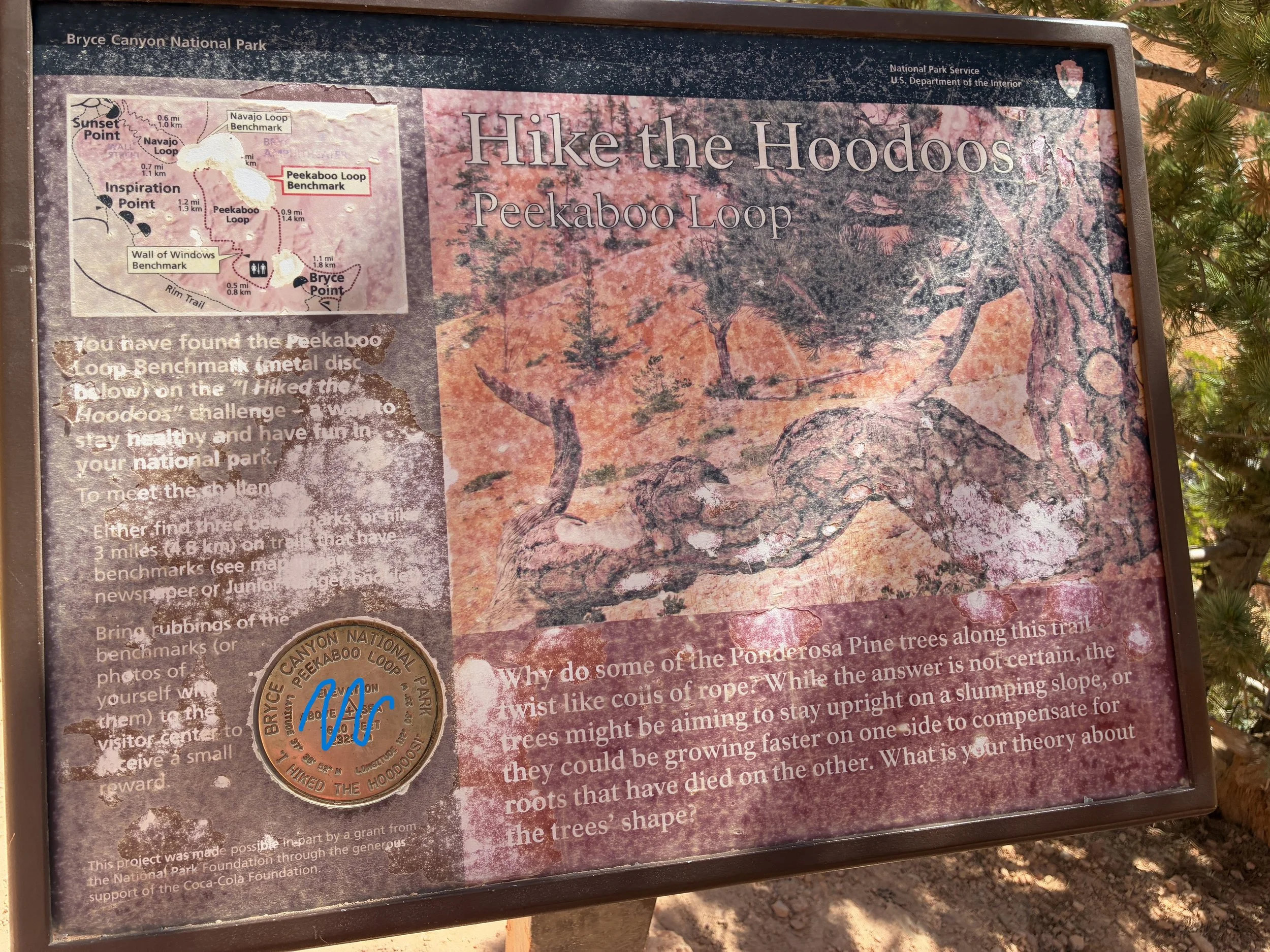 A fun activity at Bryce Canyon is the Hike the Hoodoos Challenge. There are 9 medallions that can be found on park information signs throughout the park (we found 7). Take pictures of 3 of them (or hike 3 miles inside Bryce Canyon). After completing the Challenge, find a Park Ranger to receive a special surprise. If the Rangers aren’t out on the trails, stop back inside the Visitor Center.