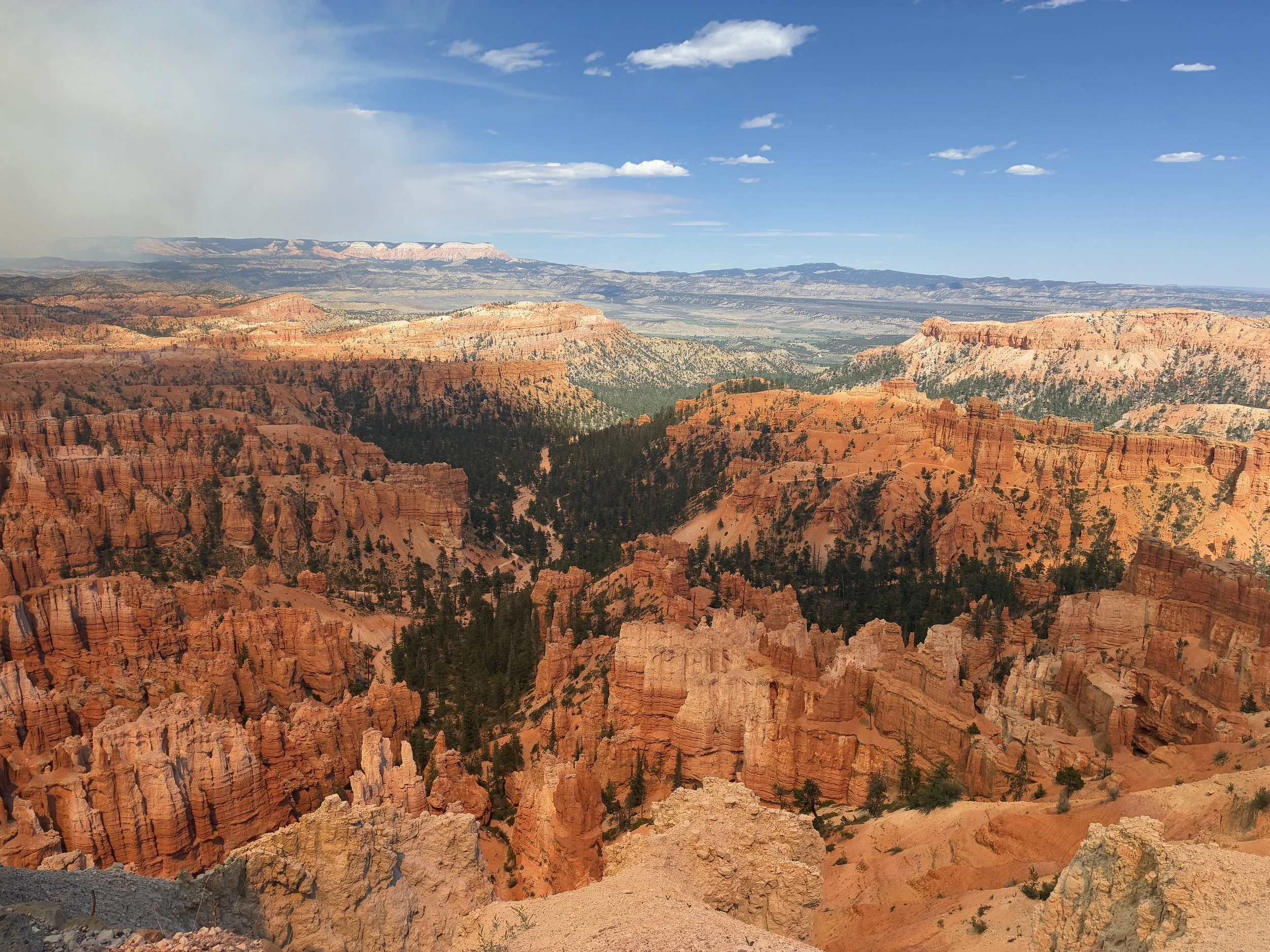 Bryce Canyon, Upper Inspiration Point - the cloud is a smoke cloud from the 2025 France Dixie Fire