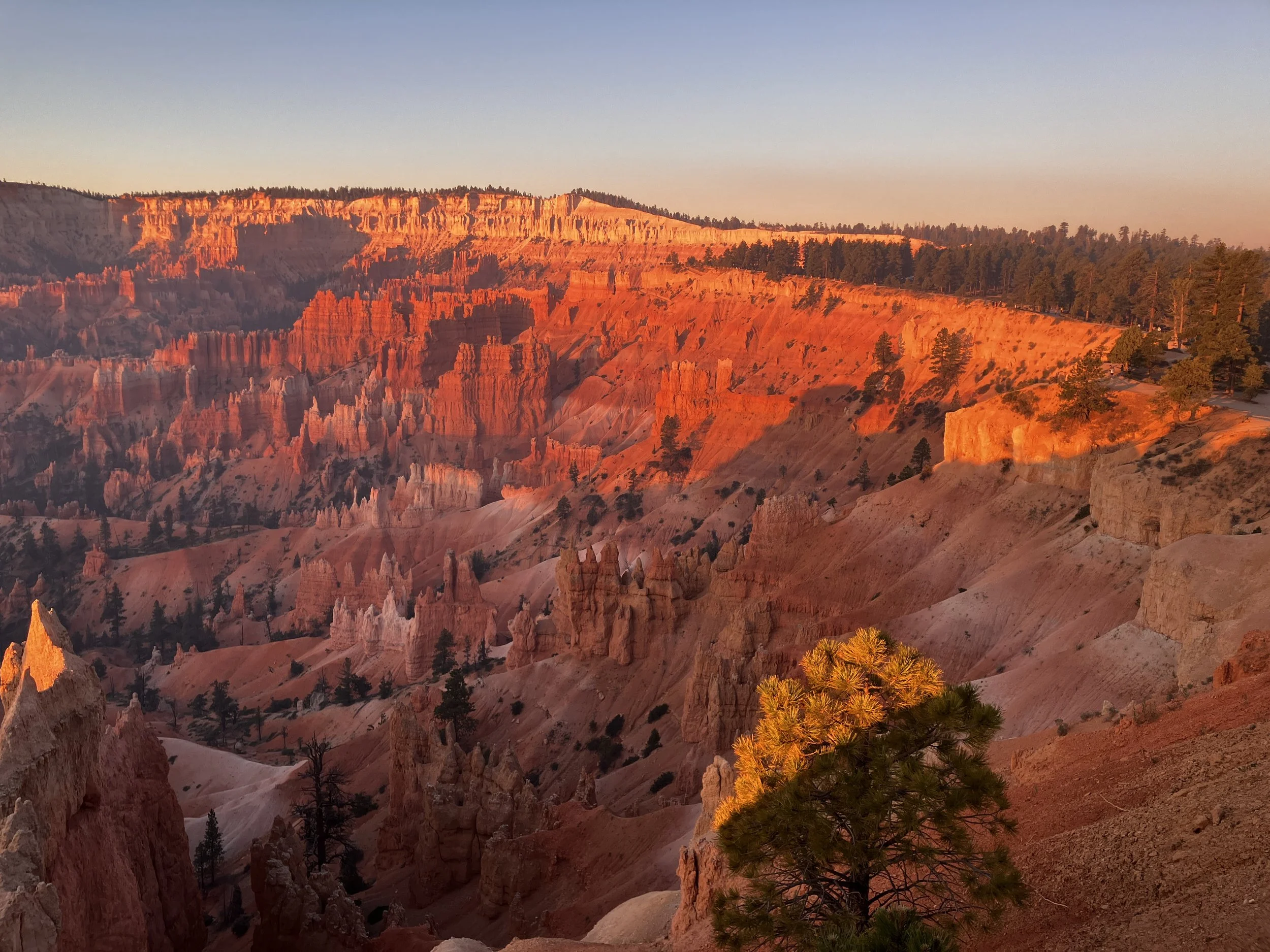 Bryce Canyon, Sunrise Point – Hoodoos off on the right (only visible from the Sunrise Point overlook) lighting up in the early morning sunlight