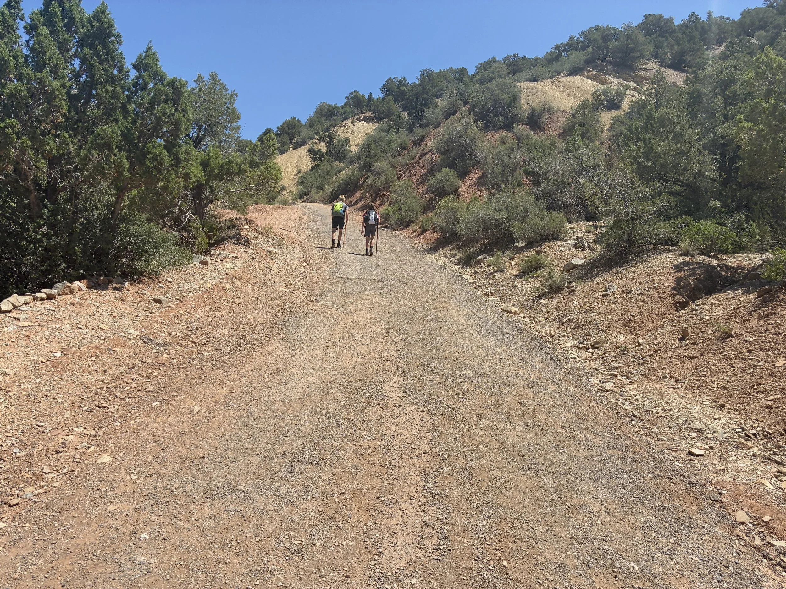 The trail is prettier here than the original Jeep trail section. The incline also levels out, so this section of the trail is quite pleasant, other than being exposed to the sun. By this point though, we were starting to wonder when we would find the slot canyon. I hadn’t realized how far we needed to walk before we reached it.