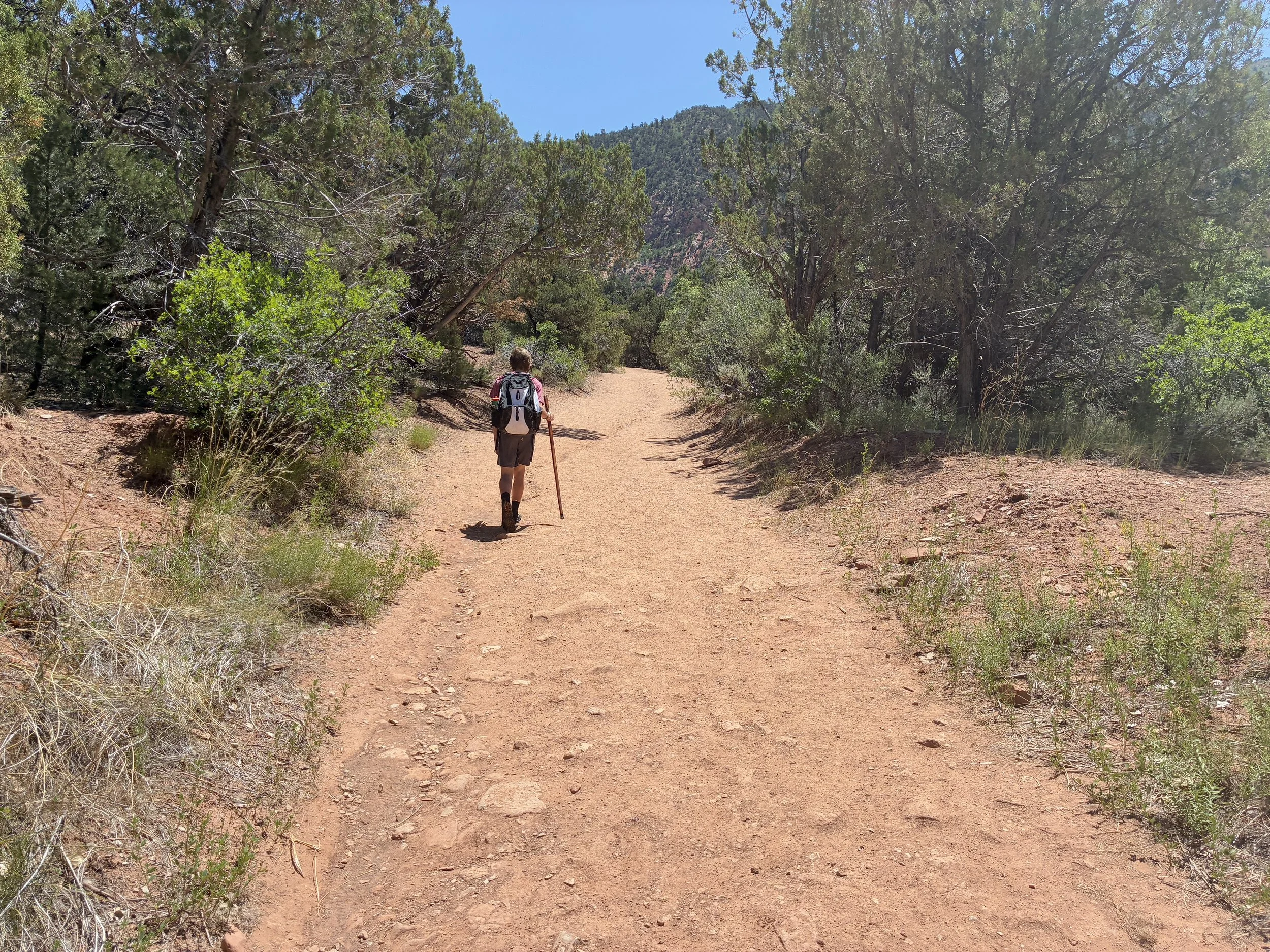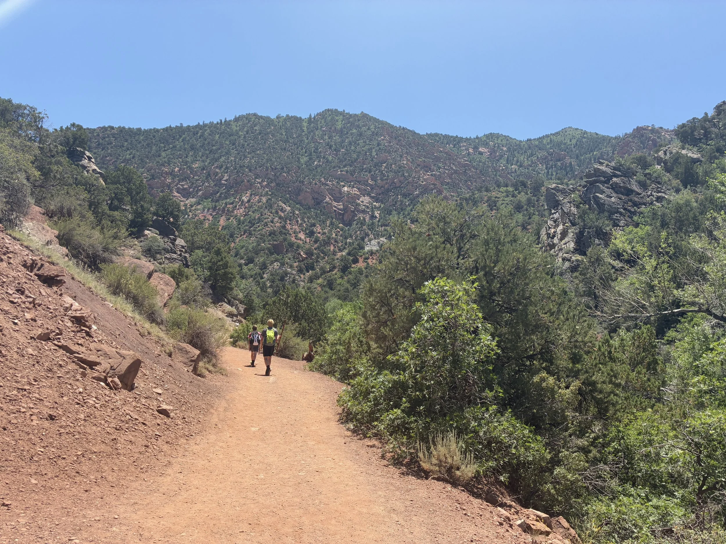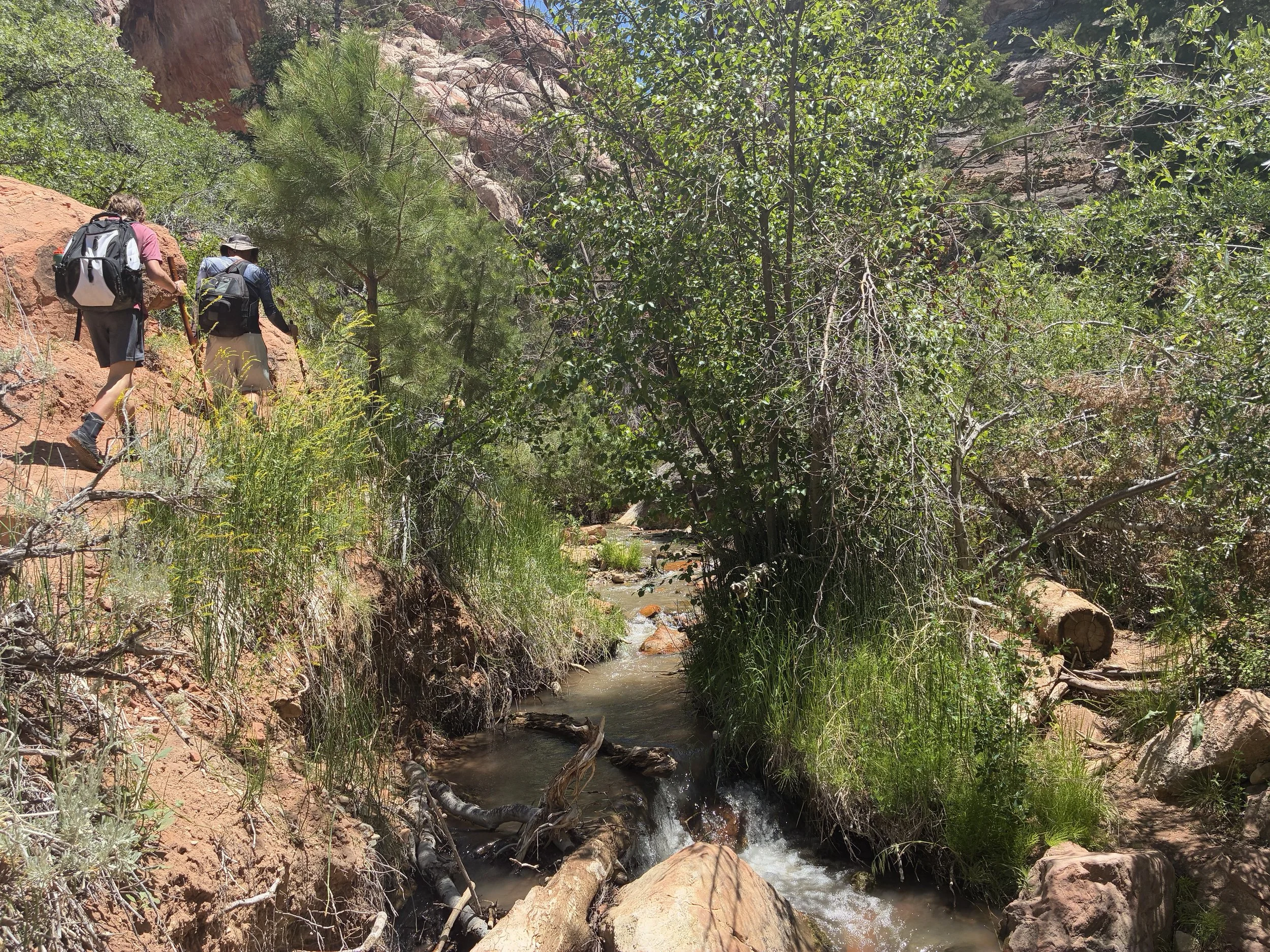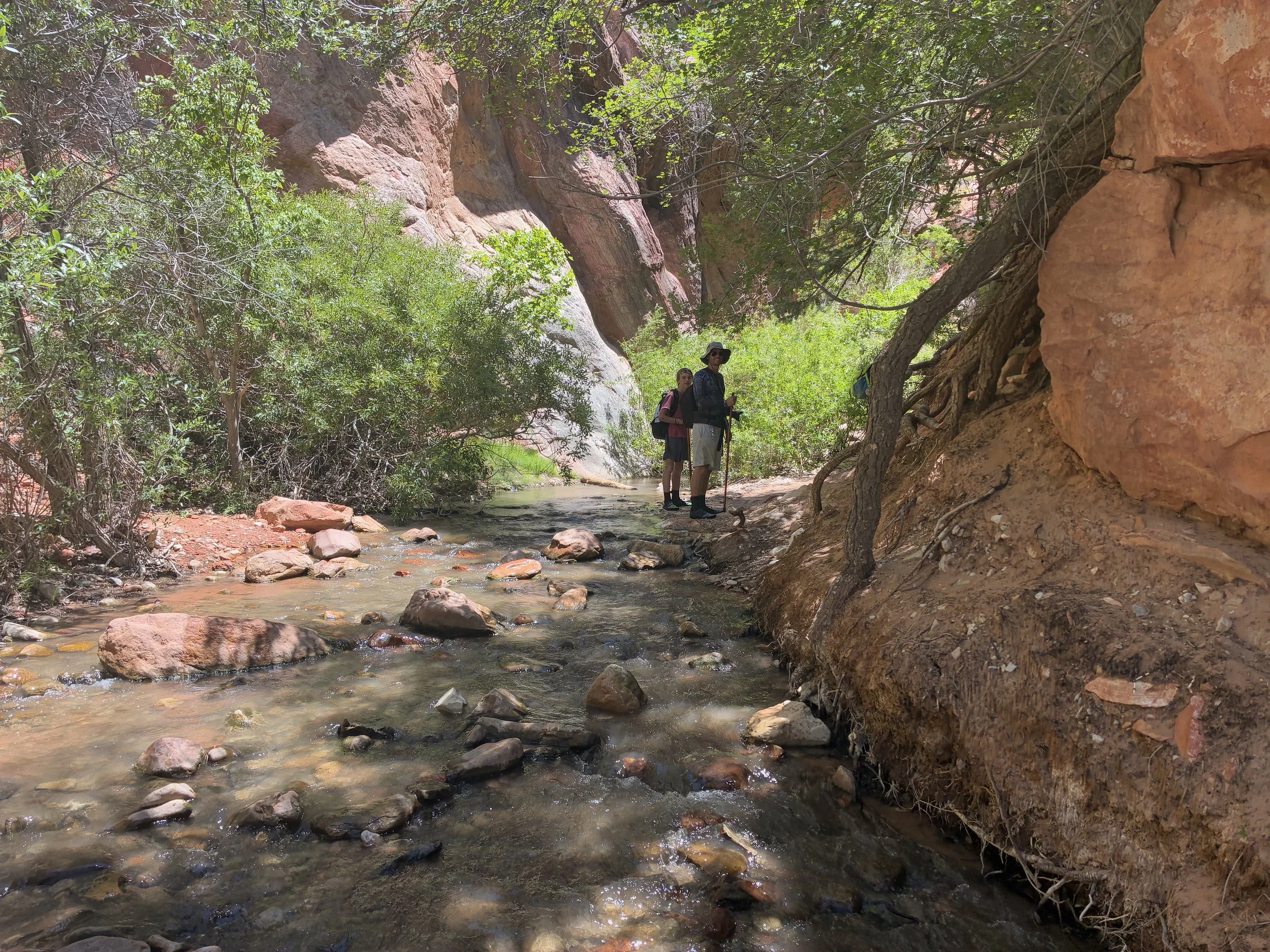Just after the vault toilet, the trail crosses the creek for the first time. We stayed on the trail. The creek would be a good option if it’s really hot (although it’s a little bit longer of a distance than the trail.)