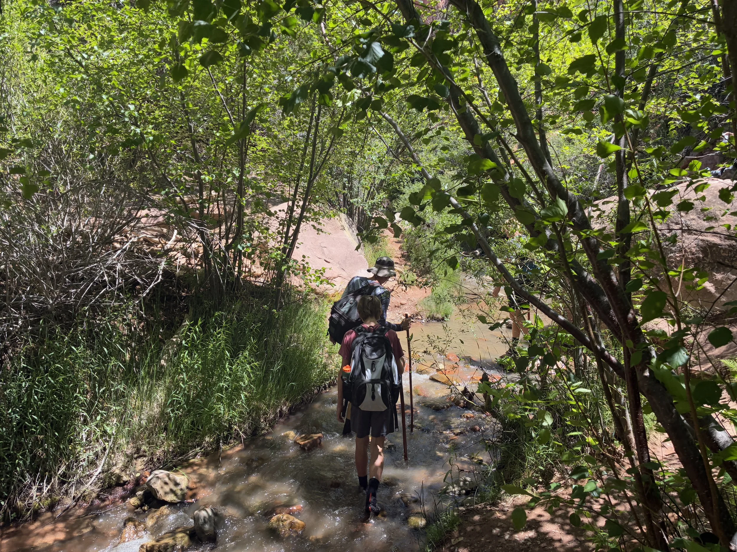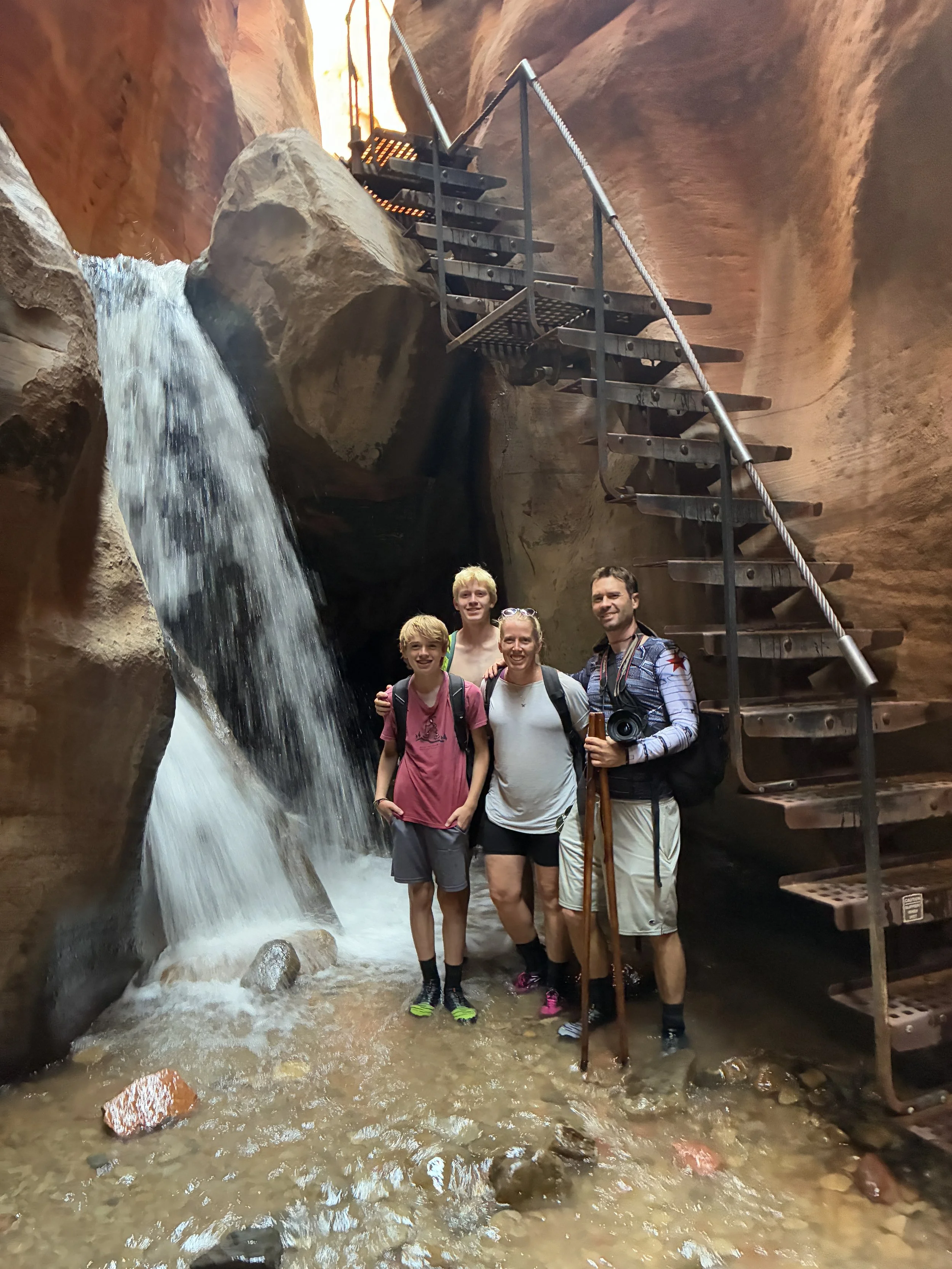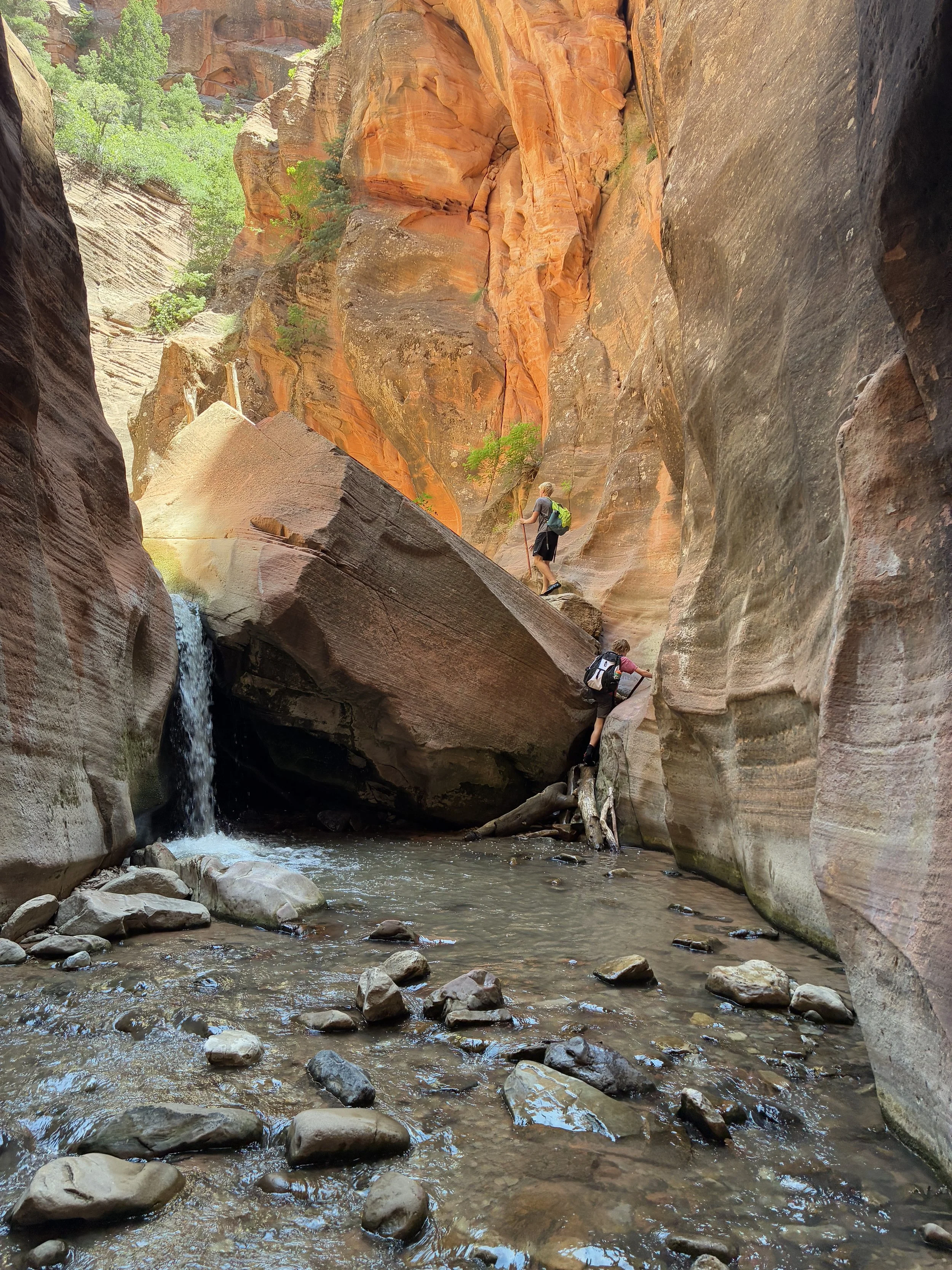For us, Kanarra Falls was a great practice run for Zion Narrows, which we did two days later, taking the top-down option for the hike. I’ve seen a few posts comparing Kanarra Falls and Narrows to rank one over the other. I don’t agree that these hikes are comparable. One is less than 4 miles ad the other is over 17 miles (and that doesn’t count the extra miles for anyone hiking back and forth and back and forth along the Virgin River). One is easy, and the other was ridiculously hard. Kanarra falls was ankle deep, Zion Narrows was chest deep (at the beginning for anyone hike upstream from the bottom), making it difficult for smaller children to hike. The slot canyon portion of Kanarra Falls is 0.2 miles, the slot canyon section of Zion Narrows is over 2 miles - by far the hardest part of the Narrows hike. Kanarra Falls is permitted, limiting the number of hikers. For anyone hiking from the bottom up, Zion Narrows isn’t permitted for the first several miles, and it’s crazy full of people on a hot day. The top-down part of the hike (which is permitted), was the best way to hike the Narrows to get the quiet canyon experience. These were such different days for us, I wouldn’t say one is a better option than the other. We loved both.