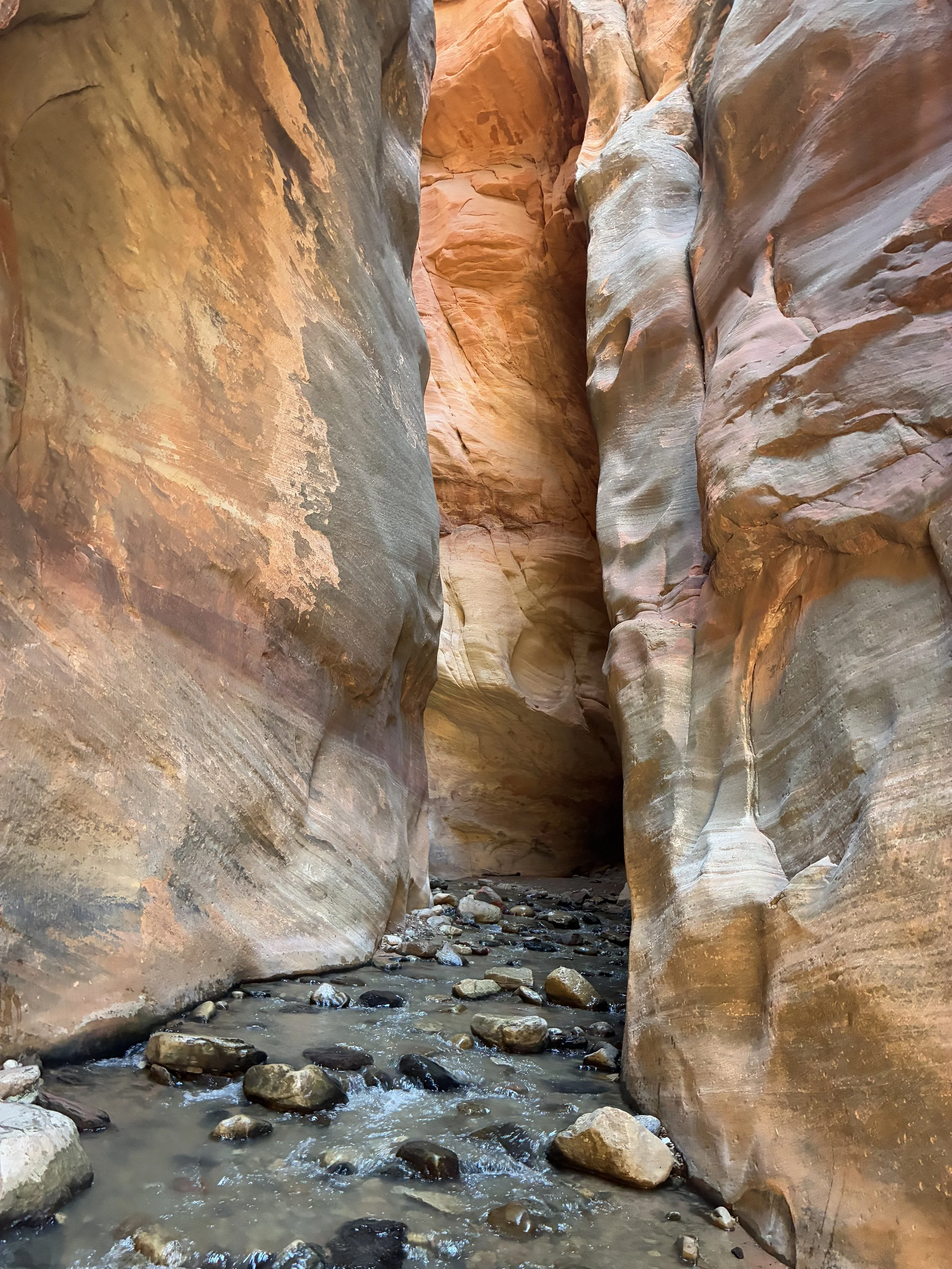 Hiking through a slot canyon with a moving creek under our feet was an amazing experience! This is the same water that formed this canyon.