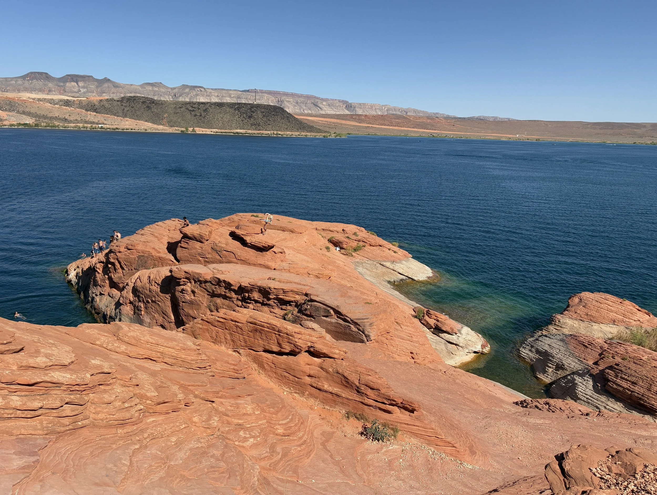 Although the summer months wouldn’t be my recommendation to visit Zion National Park due to the intense heat, sometimes that’s where one heads anyway. We wanted to hike the Narrows, try out canyoneering in Zion’s backcountry, and see Kanarra Falls. Three failed attempts at hiking Kanarra Falls over Spring Break resigned me to the fact I was probably heading to southern Utah in June. It was crazy hot, but for these hikes, the weather was perfect for what we wanted to do. We had a little bit of time left one afternoon when it was 106 deg F, and needed something else fun to do that kept us cool. I was aware that cliff jumping was an option at Sand Hollow, and the State Park was just 20 minutes from the KOA where we were staying in Hurricane, UT, so that’s where we went.
