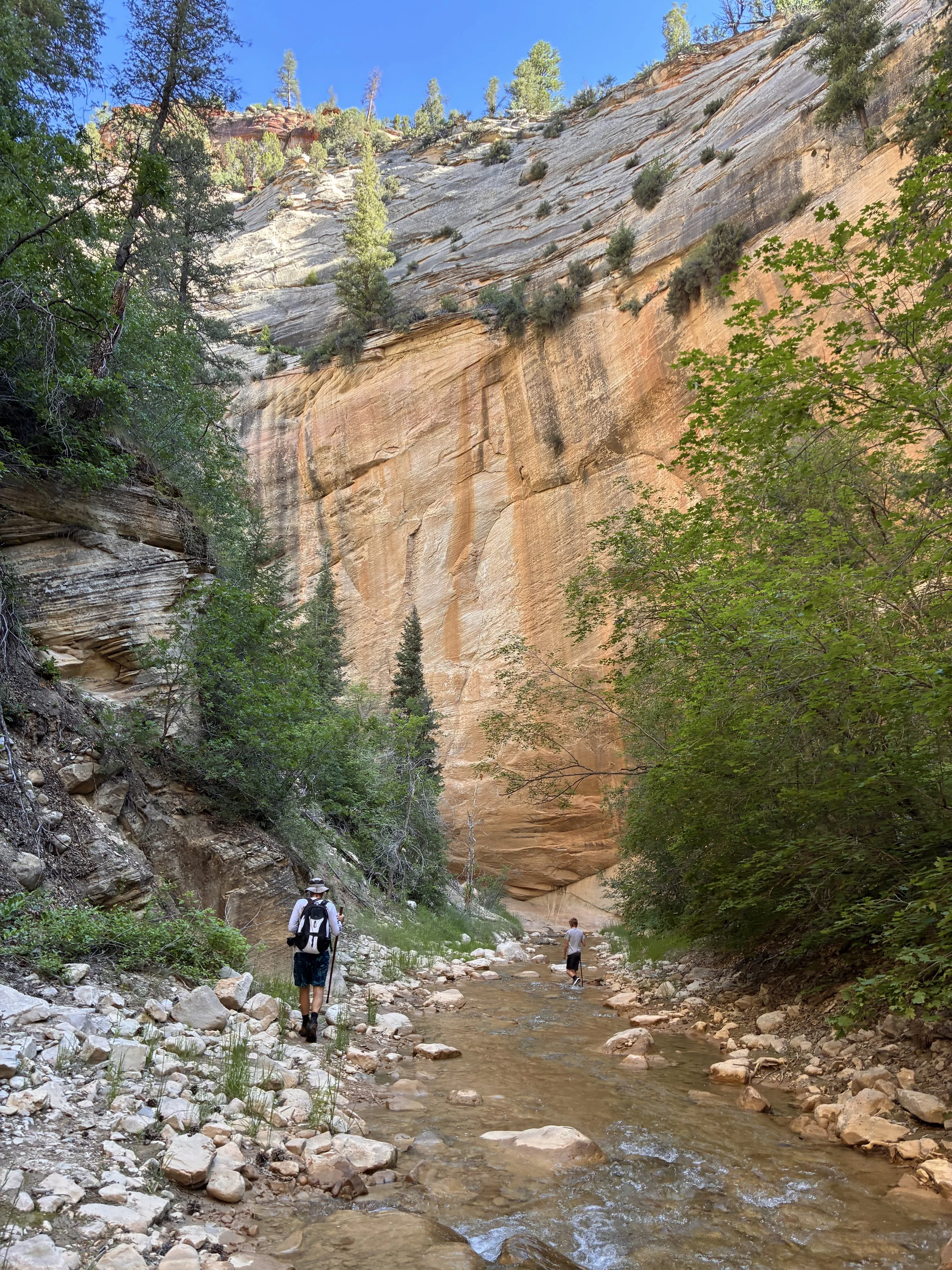 I’m going to state miles in this post, but this assumes someone walks straight in the middle of the river, which does not happen. We crossed back and forth across the river hundreds of times to find the easiest way to walk (trying to avoid rocks, slippery spots, deeper sections, etc.). We walked at least two additional miles beyond the quoted mileage due to our constant crossing back and forth across the river. Something to keep in mind when planning for this hike.