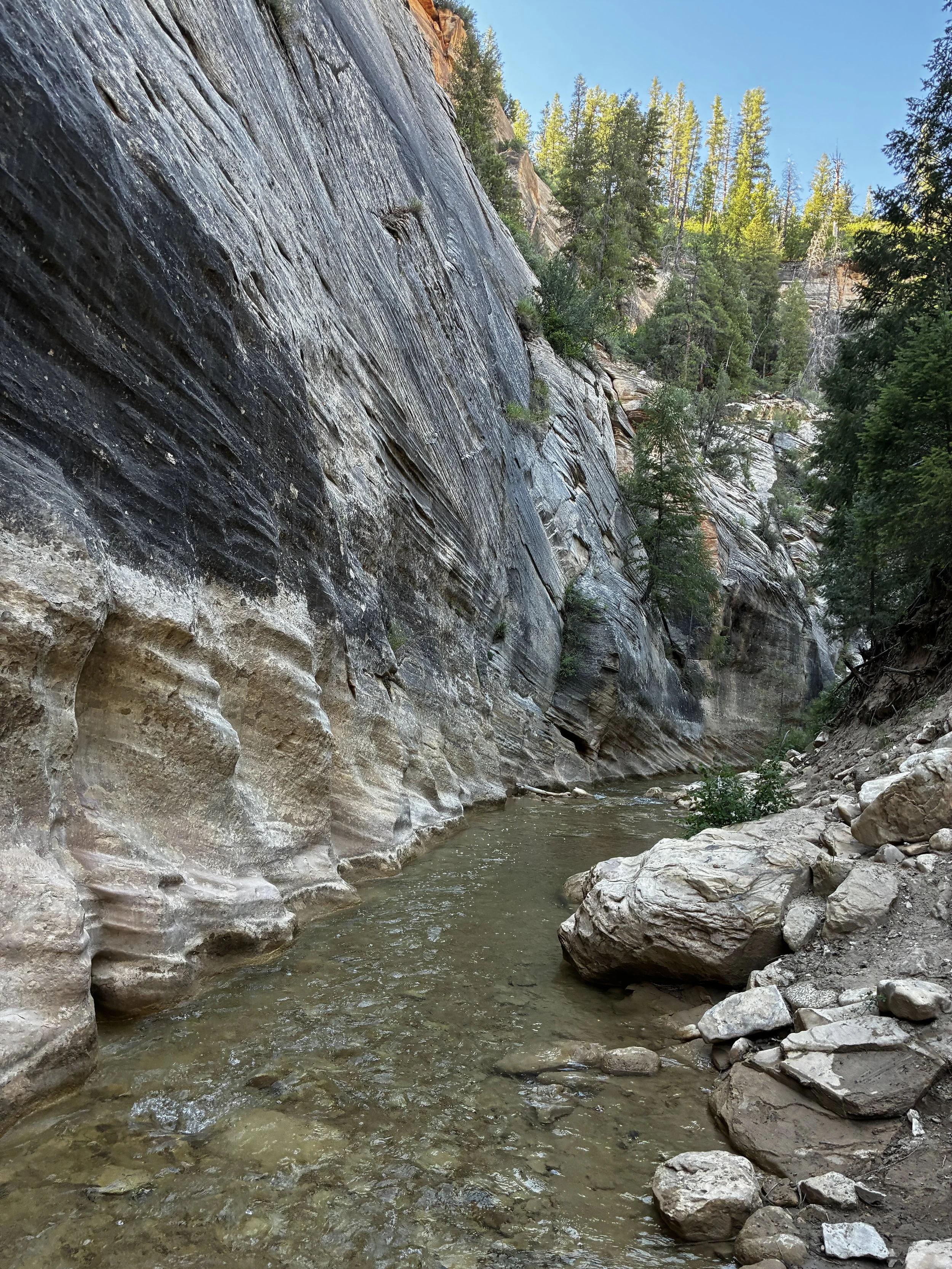 One last bit of advice - pay attention and be prepared. Don’t go into the Narrows if there is a threat of rain. The rock has been formed into a canyon due to flash floods. Water is powerful. There is a 2-mile section between Orderville Canyon and Big Springs with no high ground, just thousand foot cliffs on both sides. If this part of the canyon floods, there’s no where to go, and people have died as a result. There isn’t a way to prepare for flash floods other than to not enter the canyon.