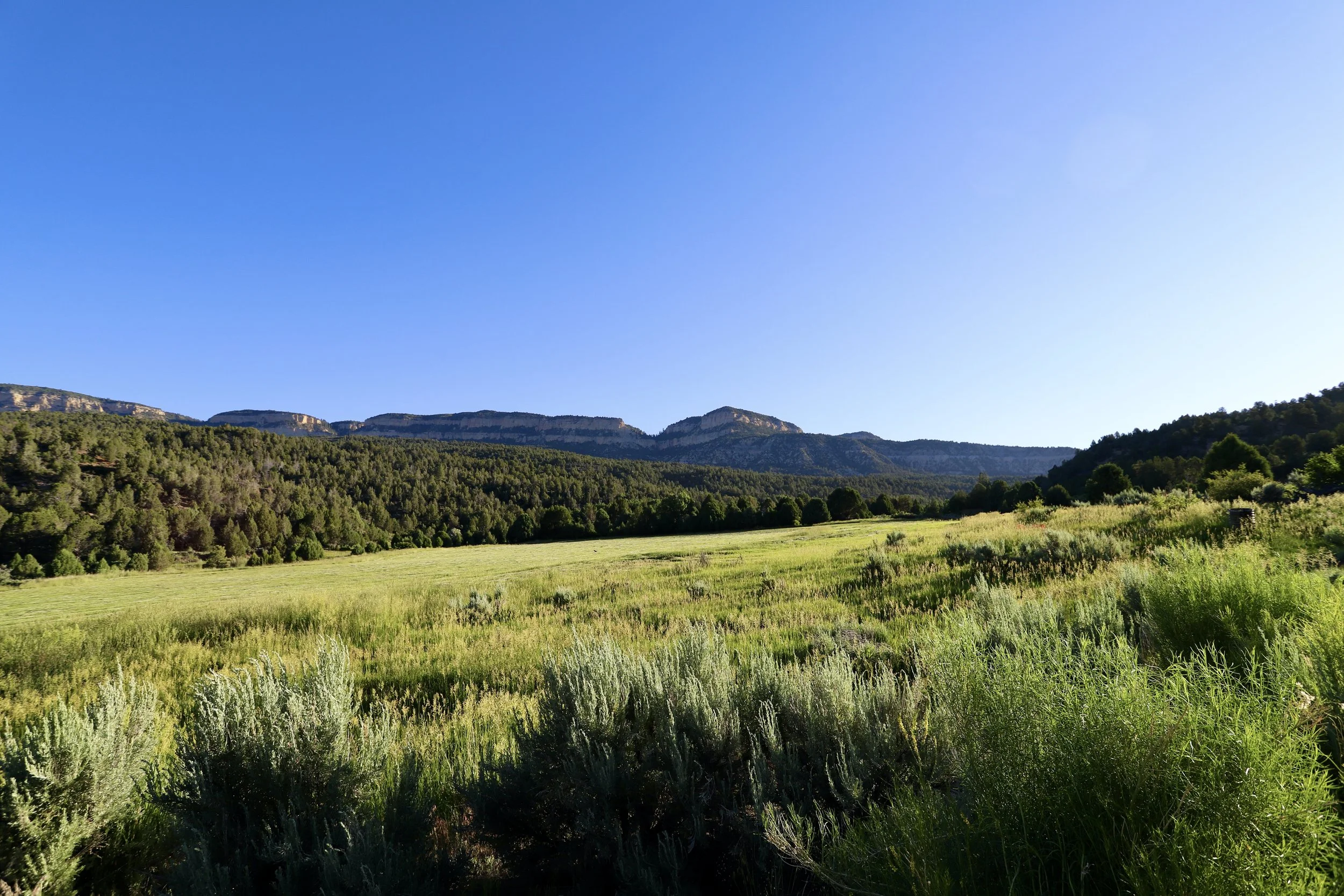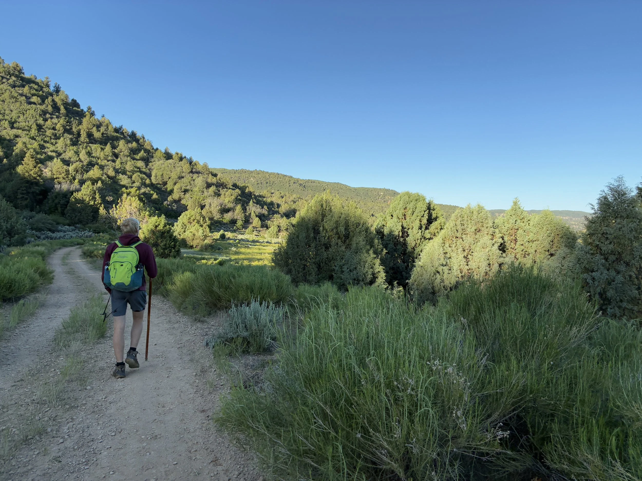 Hiking the first section of ranchland to get to the Virgin River (7:40am)