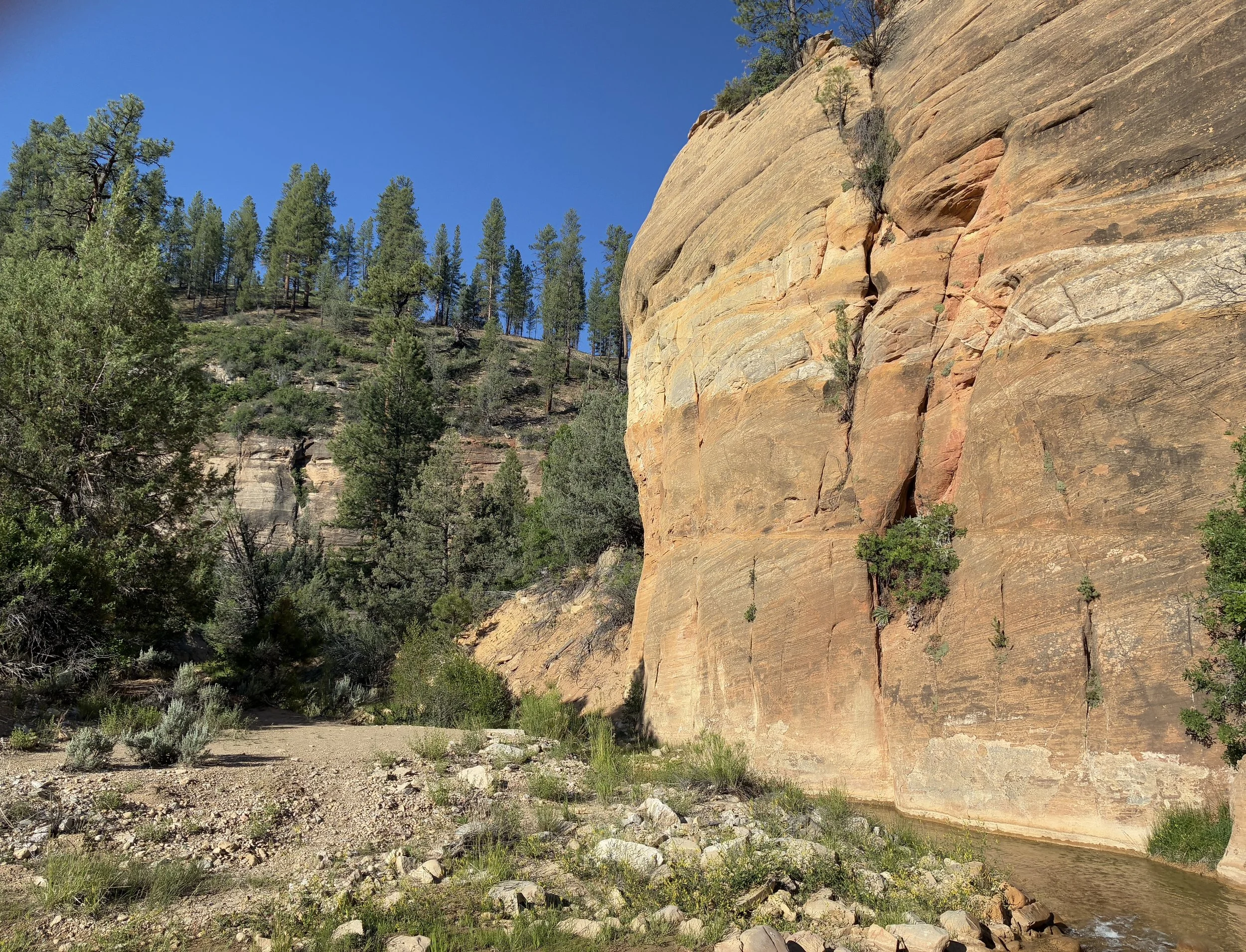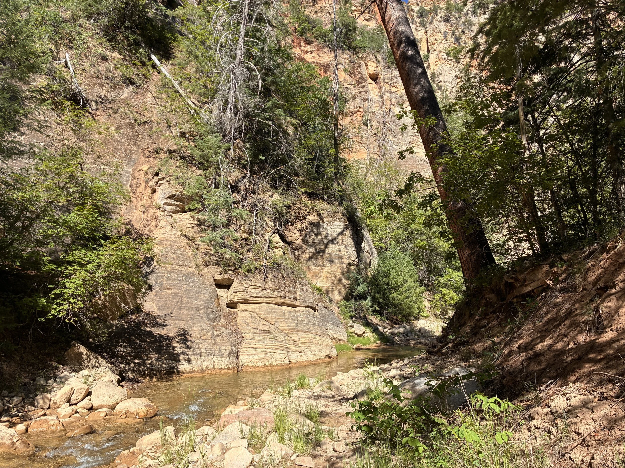 In the canyon walls just a little bit, looking back upstream (11:08am)