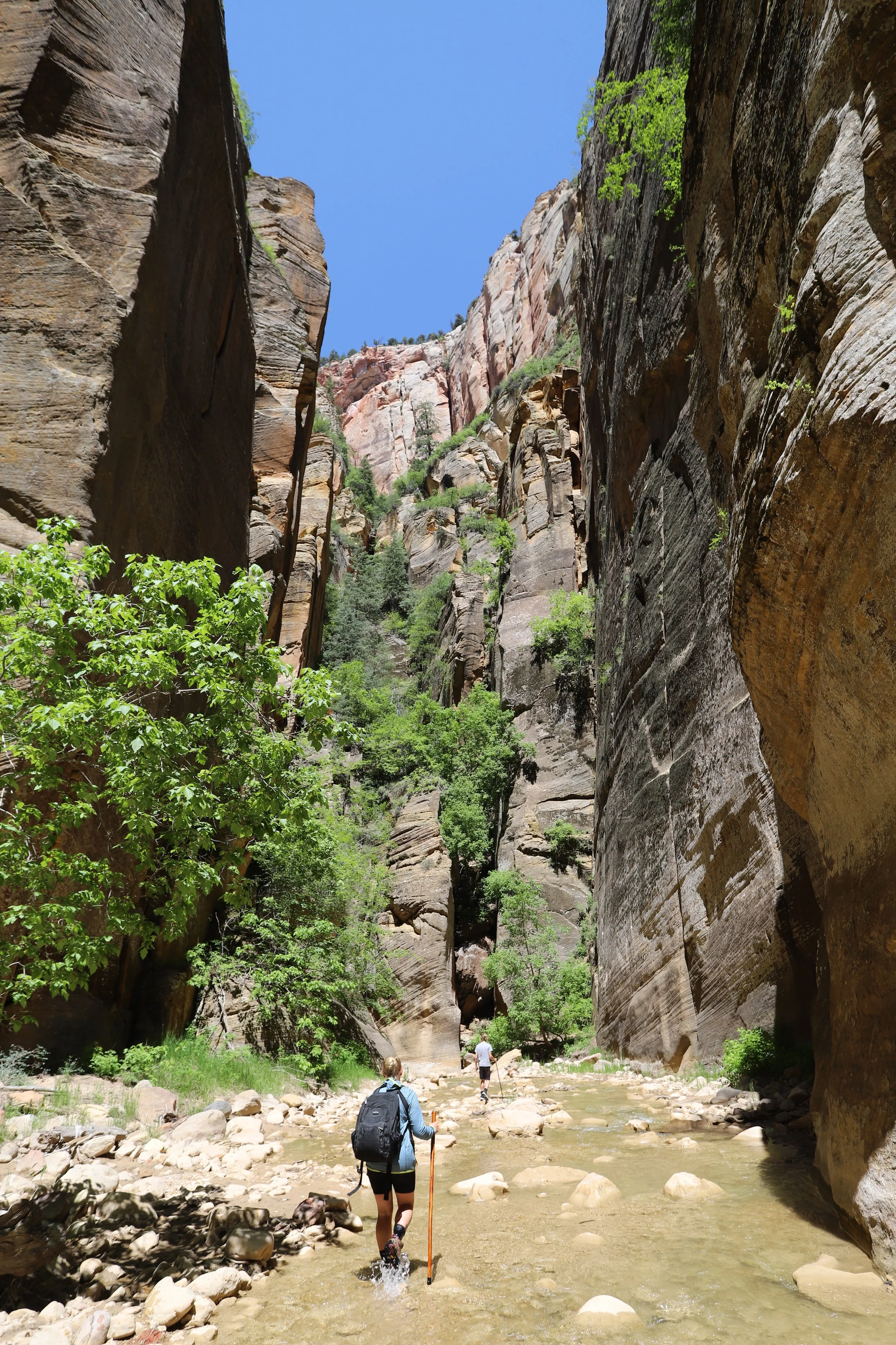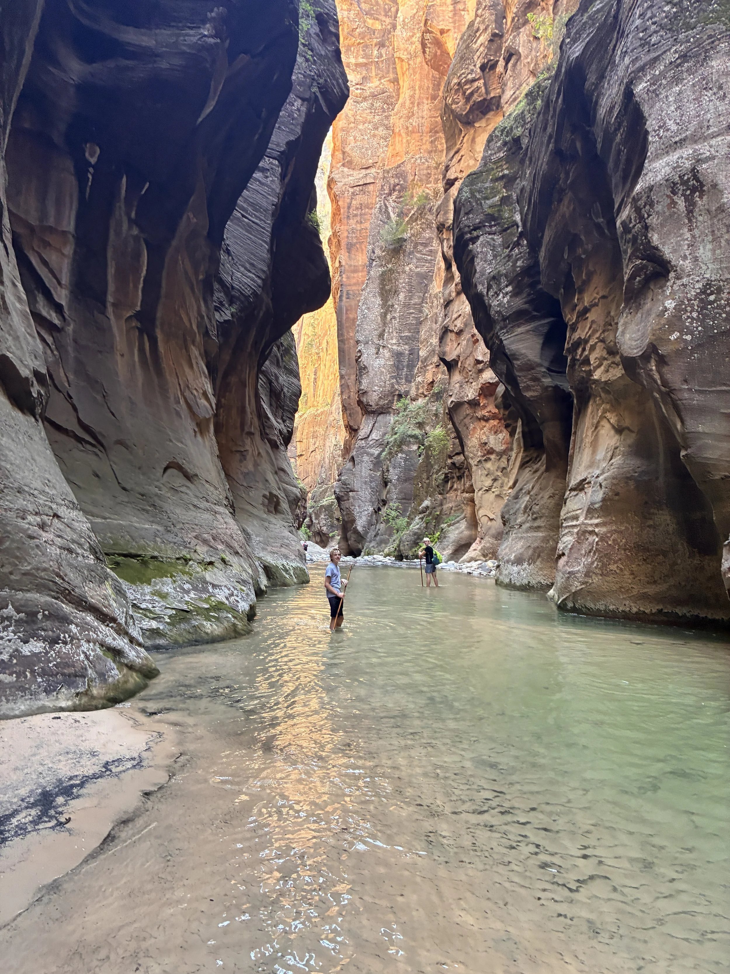 Thinking of hiking the Narrows? Hiking top-down or bottom-up - it doesn’t matter, you will get wet. The deepest section, unfortunately, is at the bottom, close to the Riverside Walk entrance into the Narrows. It was chest-deep when we visited in June. So even those that just want to walk a short distance up and back are going to hit that deep section in a matter of minutes.