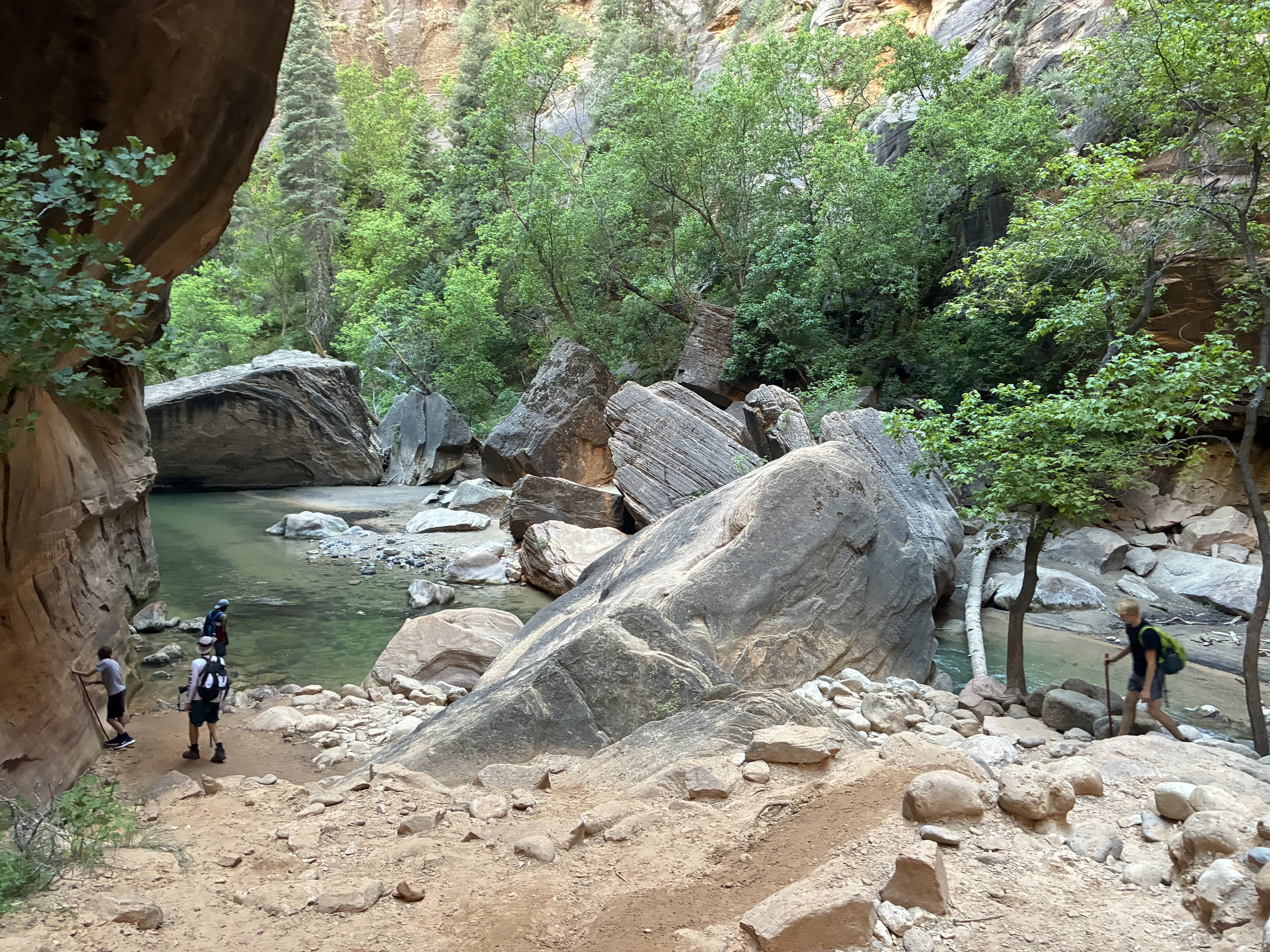 This would be the place to do your thing if you need to, or as our family says “see a man about a horse.” From this point onward, the canyon walls get pretty tight and there’s going to be a lot of people around, severely restricting comfortable options.