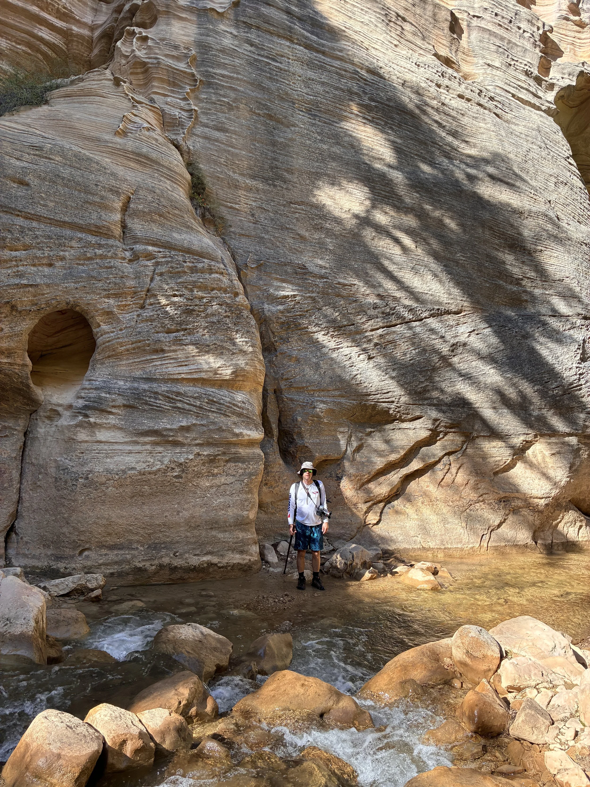 After Orderville, I was ready to be done with this hike. I was tired, there was still quite a bit of trail left, navigating around people was getting annoying. And then we get to this section - waist deep water. I’d stayed relatively dry other than my feet up to this point. I was less than thrilled we had to walk through this extra deep section of the Virgin River towards the end of the trek. I did dry off though before we got on the bus - a feature of hiking in a desert.