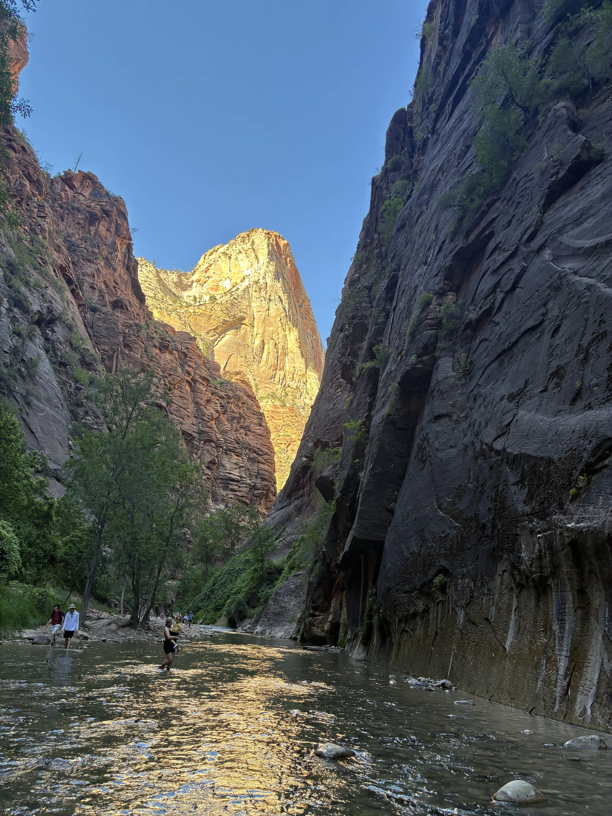 The deepest section of the Virgin River is about 10 minutes into the hike from the Riverside Walk entrance (6:00pm)