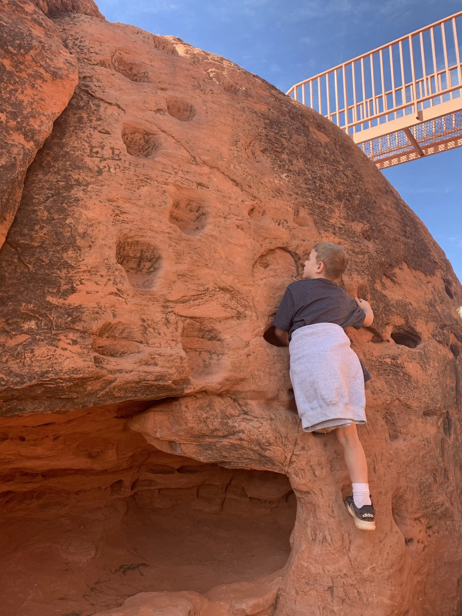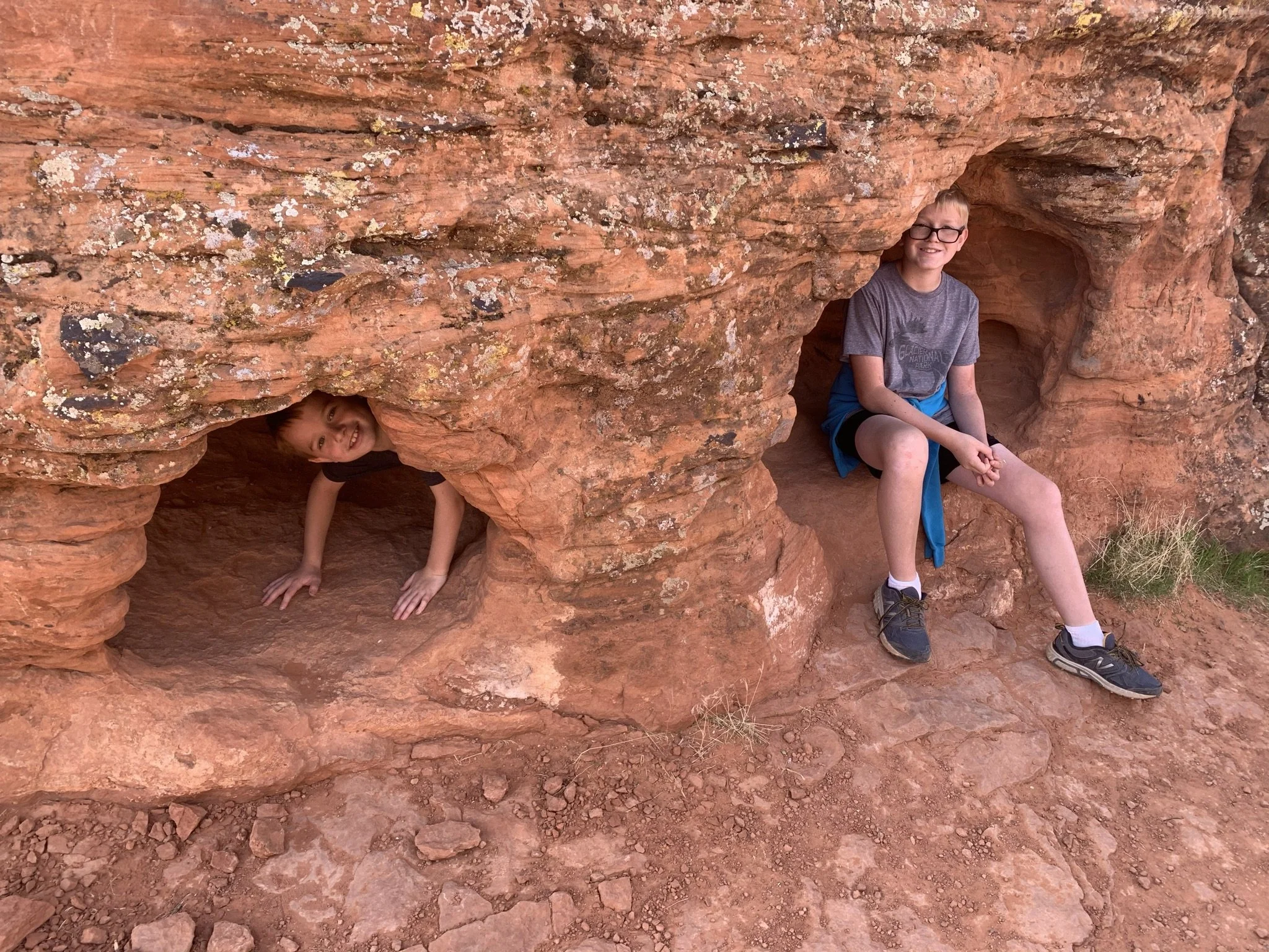 Pioneer Park rests on the northern edge of St. George, Utah. This is a free public park with zero playground equipment but still offers hours of playtime. My boys were doing distance learning throughout 2021, and we used that flexibility to travel around and explore outdoor spaces in attempt to make lemonade out of a year of lemons. Pioneer Park was one of their favorite places we found that year. When we got home, my youngest wanted to tell his elementary school they needed to replace their big toy with some big rocks.