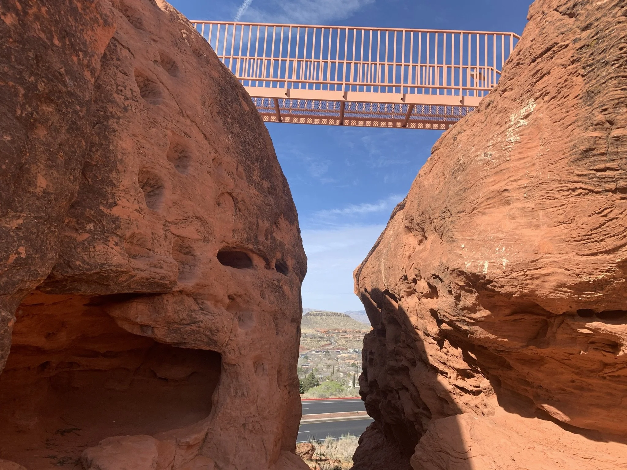 (northwest) Snow Canyon is a unique place to hike that has a short slot canyon and lava tube caves that can be explored, in addition to some beautiful hikes.
