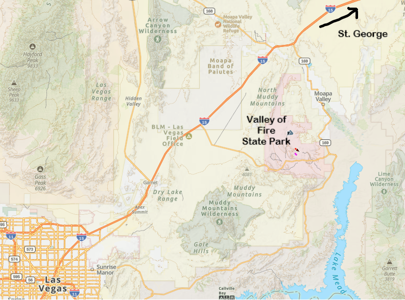 Valley of Fire is about 100 minutes from St. George, off of I-15. It is such a cool State Park, it’s easily worth that long of a drive. However, if you are traveling to St. George from Las Vegas, Valley of Fire is a great first day itinerary activity, on your way to St. George (or on your return to Las Vegas). It’s only an hour northeast of Las Vegas.